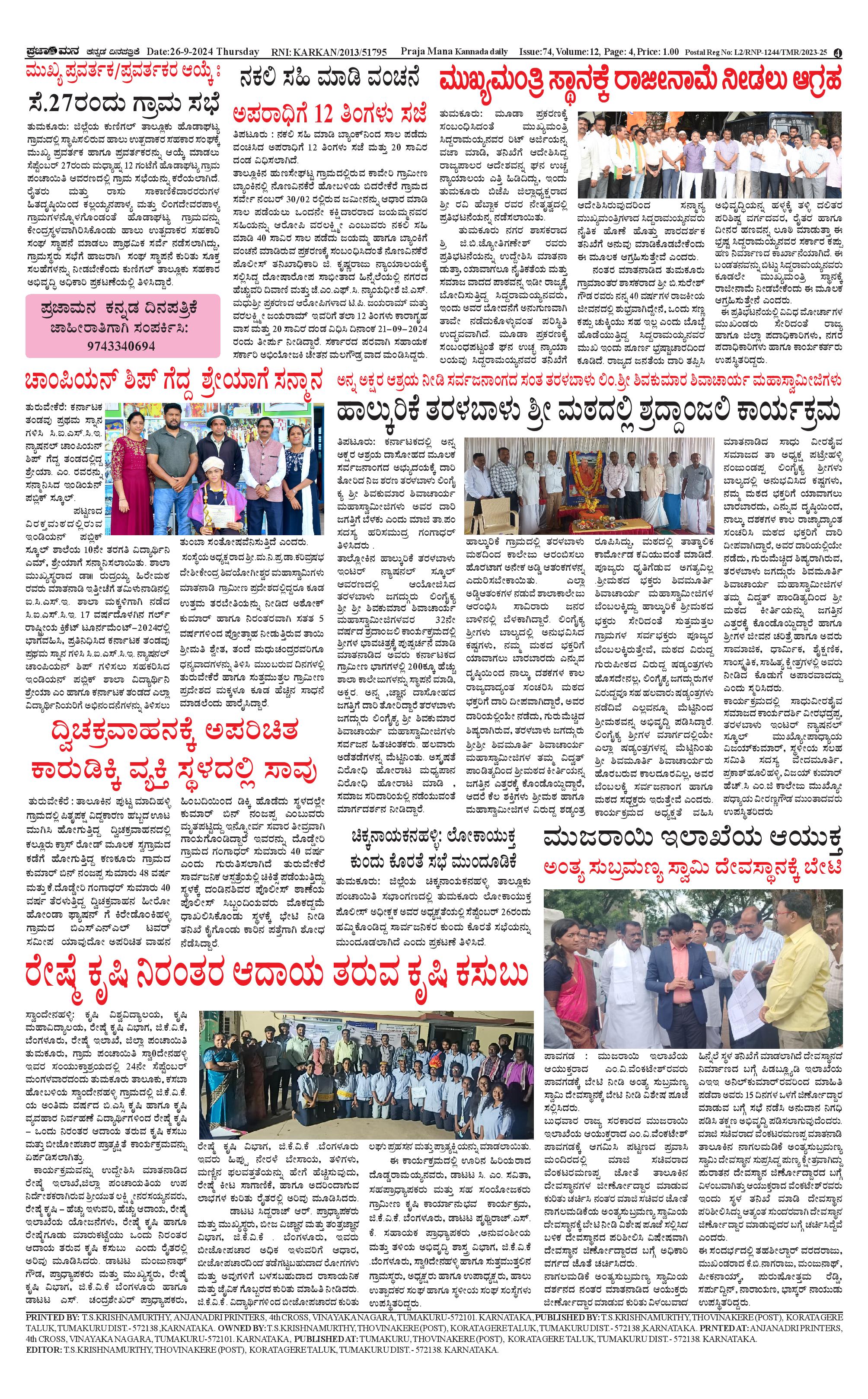 ಪ್ರಜಾಮನ 26 SEPTEMBER 2024 Page: 4 September 26, 2024 << First << 4 >> Last >> Page 1Page 2Page 3Page 4 × ಪ್ರಜಾಮನ 26 SEPTEMBER 2024 PRAJAMANA zÀ-page-001PRAJAMANA-page-002PRAJAMANA-page-003PRAJAMANA zÀ-page-004 << First << 4 >> Last >> PRAJAMANA zÀ-page-001PRAJAMANA-page-002PRAJAMANA-page-003PRAJAMANA zÀ-page-004 PRAJAMANA zÀ-page-004