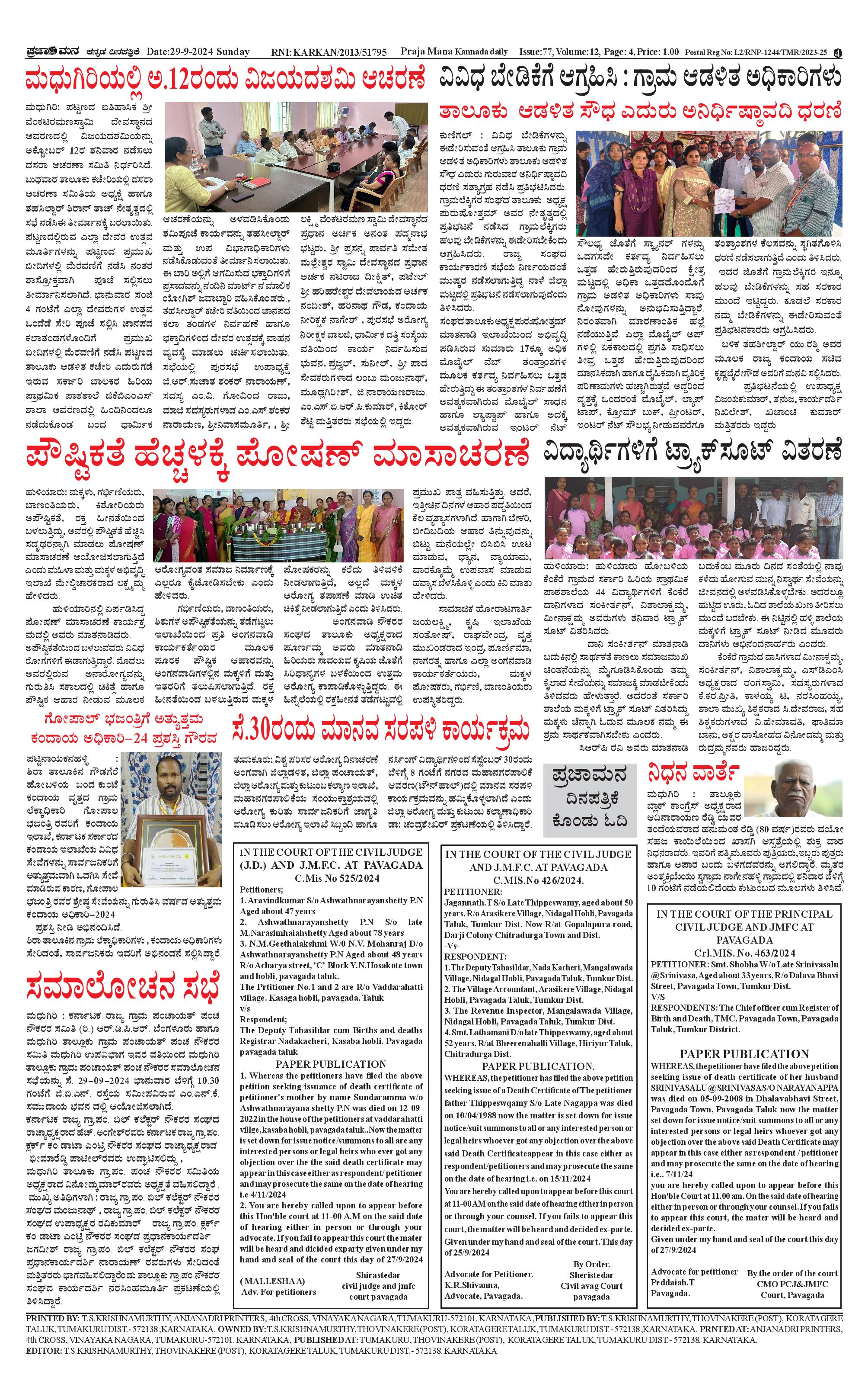 ಪ್ರಜಾಮನ 29 SEPTEMBER 2024 Page: 4 September 29, 2024 << First << 4 >> Last >> Page 1Page 2Page 3Page 4 × ಪ್ರಜಾಮನ 29 SEPTEMBER 2024 PRAJAMANA-page-001PRAJAMANA-page-002PRAJAMANA-page-003PRAJAMANA-page-004 << First << 4 >> Last >> PRAJAMANA-page-001PRAJAMANA-page-002PRAJAMANA-page-003PRAJAMANA-page-004 PRAJAMANA-page-004