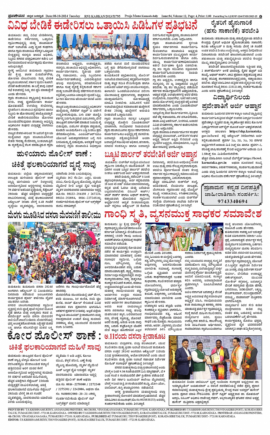 ಪ್ರಜಾಮನ 08 OCTOBER 2024 Page: 4 October 08, 2024 << First << 4 >> Last >> Page 1Page 2Page 3Page 4 × ಪ್ರಜಾಮನ 08 OCTOBER 2024 PRAJAMANA-page-001PRAJAMANA-page-002PRAJAMANA-page-003PRAJAMANA-page-004 << First << 4 >> Last >> PRAJAMANA-page-001PRAJAMANA-page-002PRAJAMANA-page-003PRAJAMANA-page-004 PRAJAMANA-page-004
