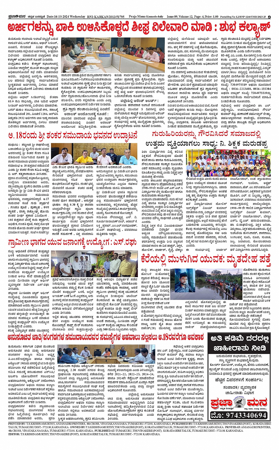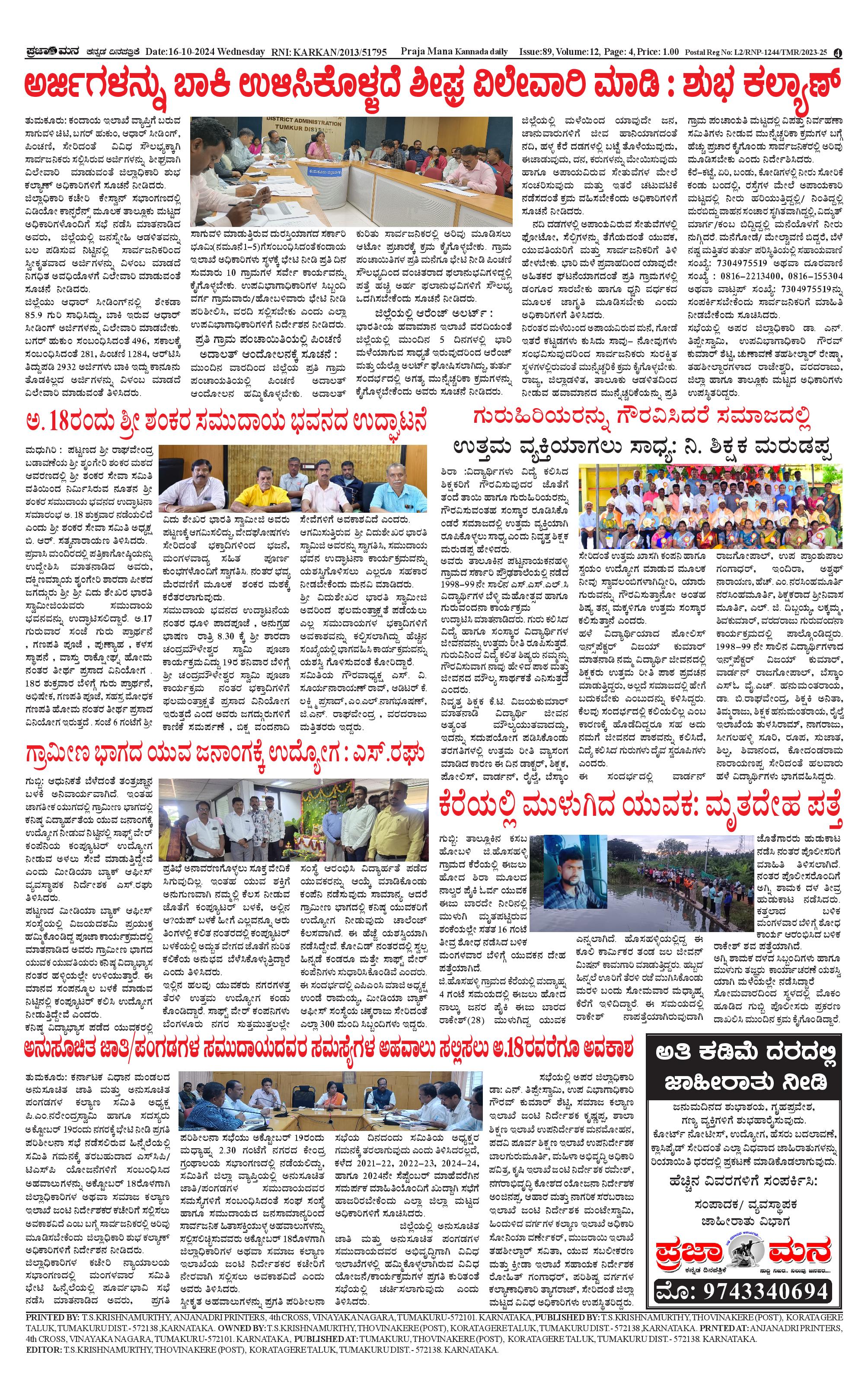 ಪ್ರಜಾಮನ 16 OCTOBER 2024 Page: 4 October 16, 2024 << First << 4 >> Last >> Page 1Page 2Page 3Page 4 × ಪ್ರಜಾಮನ 16 OCTOBER 2024 PRAJAMANA-page-001PRAJAMANA-page-002PRAJAMANA-page-003PRAJAMANA-page-004 << First << 4 >> Last >> PRAJAMANA-page-001PRAJAMANA-page-002PRAJAMANA-page-003PRAJAMANA-page-004 PRAJAMANA-page-004