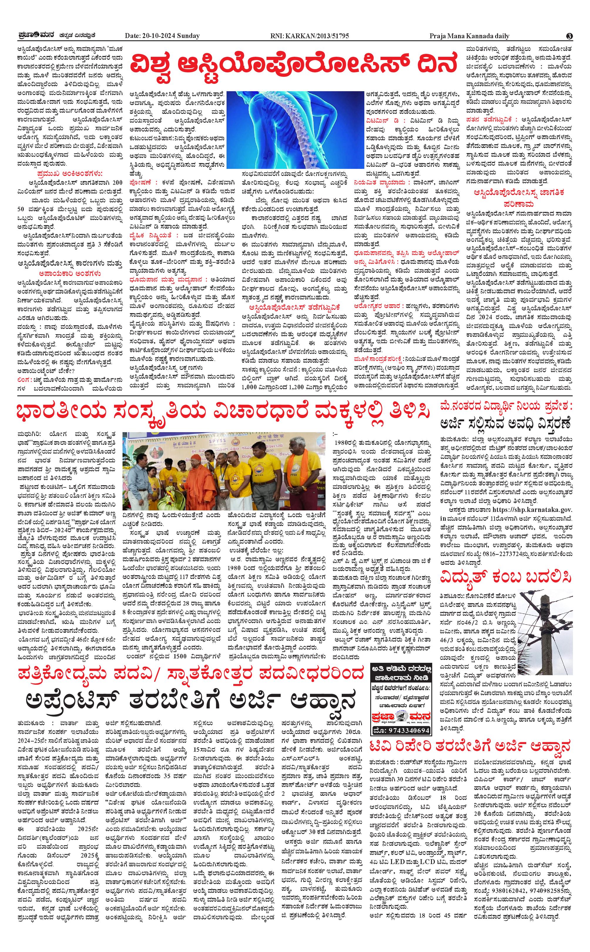 ಪ್ರಜಾಮನ 20 OCTOBER 2024 Page: 3 October 20, 2024 << First << 3 >> Last >> Page 1Page 2Page 3Page 4 × ಪ್ರಜಾಮನ 20 OCTOBER 2024 PRAJAMANA-page-001PRAJAMANA-page-002PRAJAMANA-page-003PRAJAMANA-page-004 << First << 3 >> Last >> PRAJAMANA-page-001PRAJAMANA-page-002PRAJAMANA-page-003PRAJAMANA-page-004 PRAJAMANA-page-003