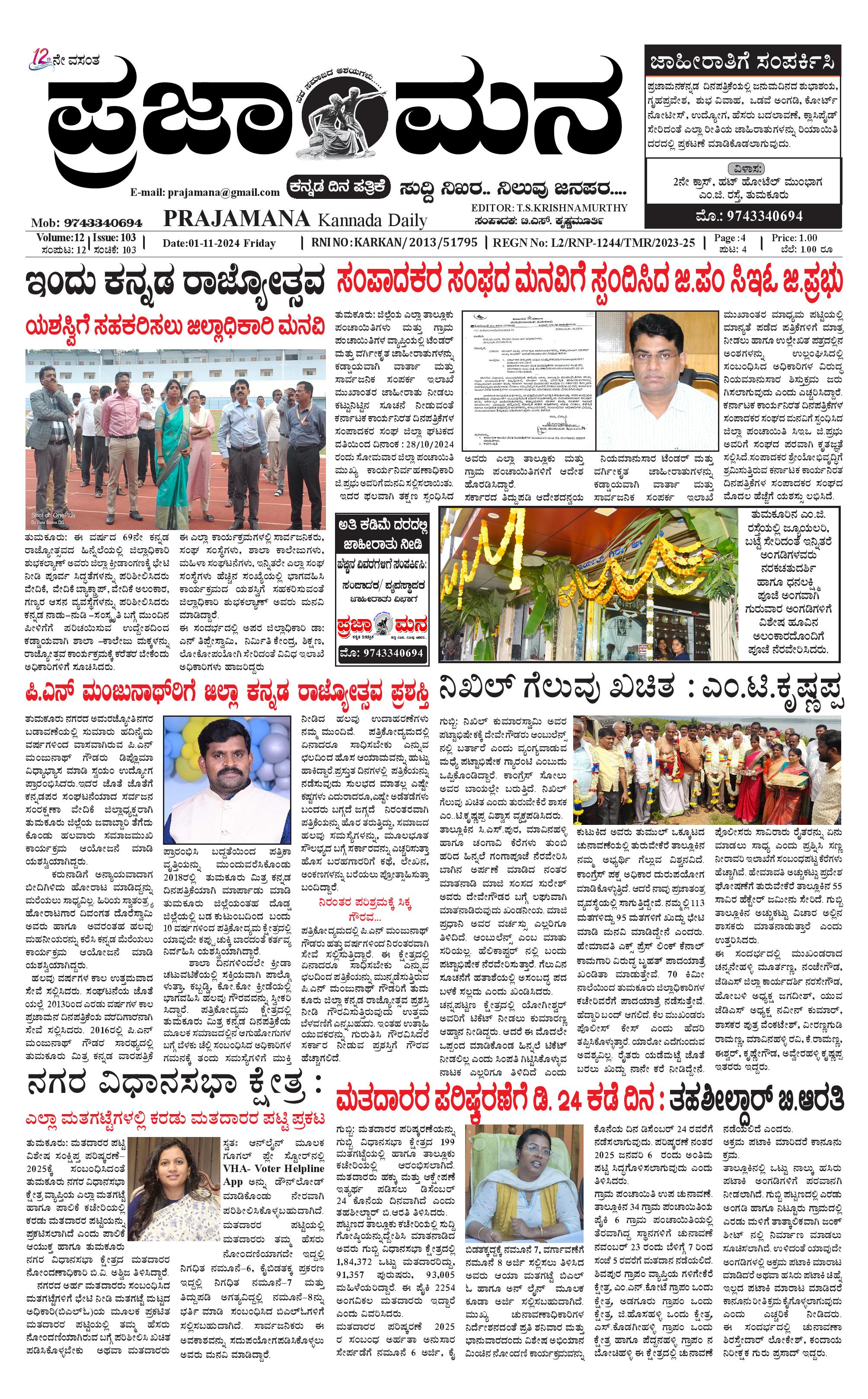ಪ್ರಜಾಮನ 1 NOVEMBER 2024