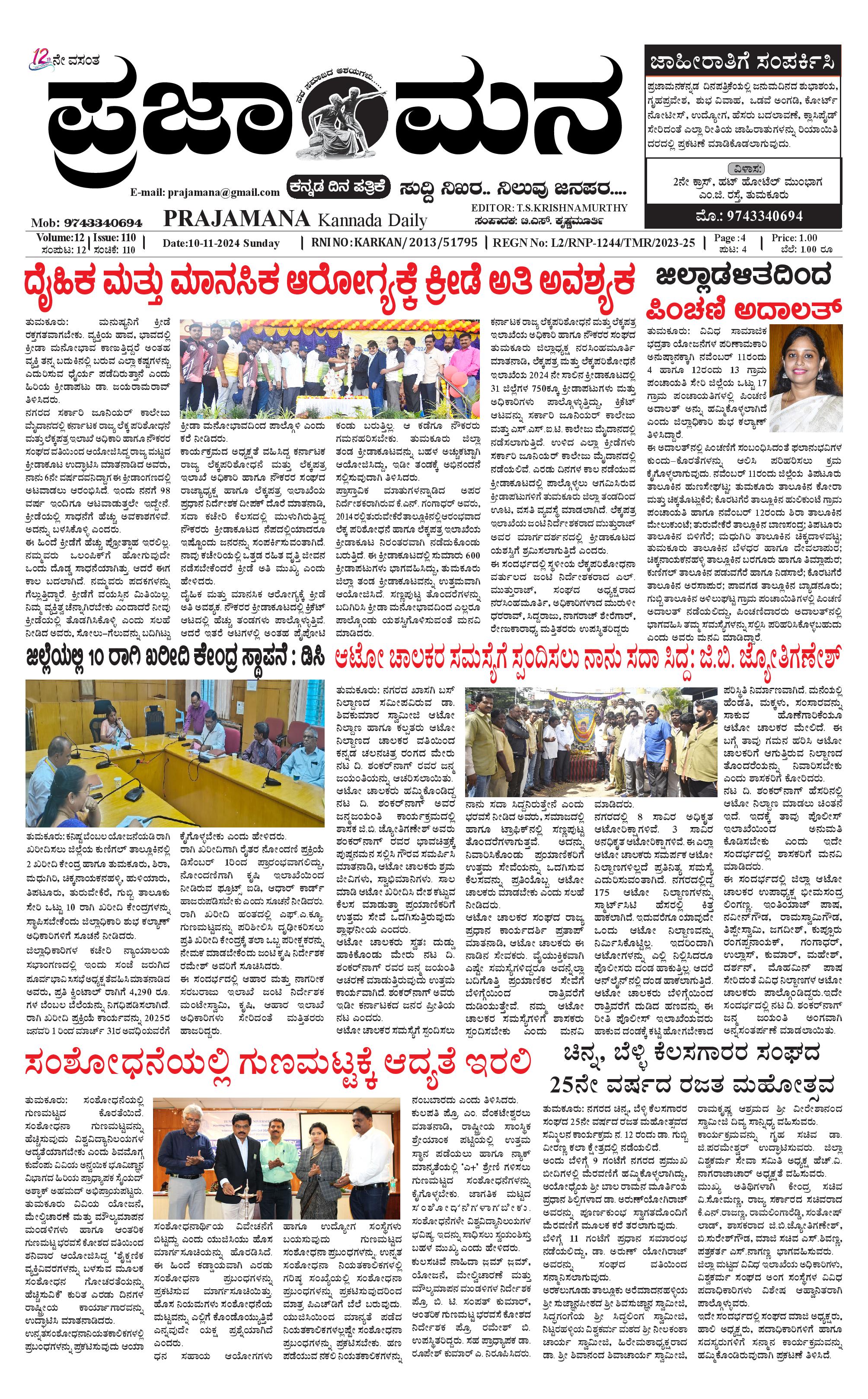 ಪ್ರಜಾಮನ 10 NOVEMBER 2024 November 10, 2024 << First << 1 >> Last >> Page 1Page 2Page 3 × ಪ್ರಜಾಮನ 10 NOVEMBER 2024 PRAJAMANA 1-page-001PRAJAMANA-page-002-1PRAJAMANA 1-page-004 << First << 1 >> Last >> PRAJAMANA 1-page-001PRAJAMANA-page-002-1PRAJAMANA 1-page-004 PRAJAMANA 1-page-001