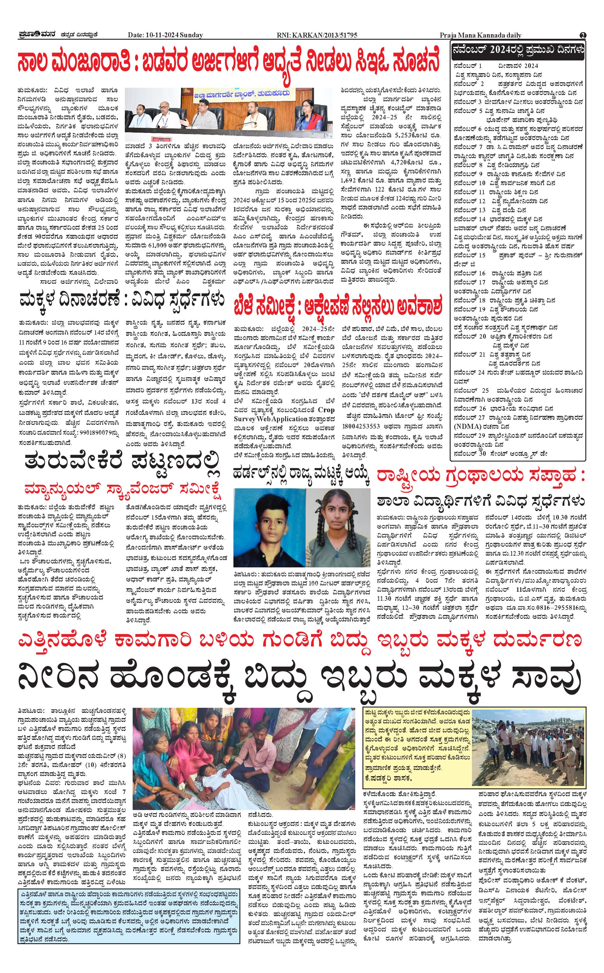 ಪ್ರಜಾಮನ 10 NOVEMBER 2024 Page: 2 November 10, 2024 << First << 2 >> Last >> Page 1Page 2Page 3 × ಪ್ರಜಾಮನ 10 NOVEMBER 2024 PRAJAMANA 1-page-001PRAJAMANA-page-002-1PRAJAMANA 1-page-004 << First << 2 >> Last >> PRAJAMANA 1-page-001PRAJAMANA-page-002-1PRAJAMANA 1-page-004 PRAJAMANA-page-002-1
