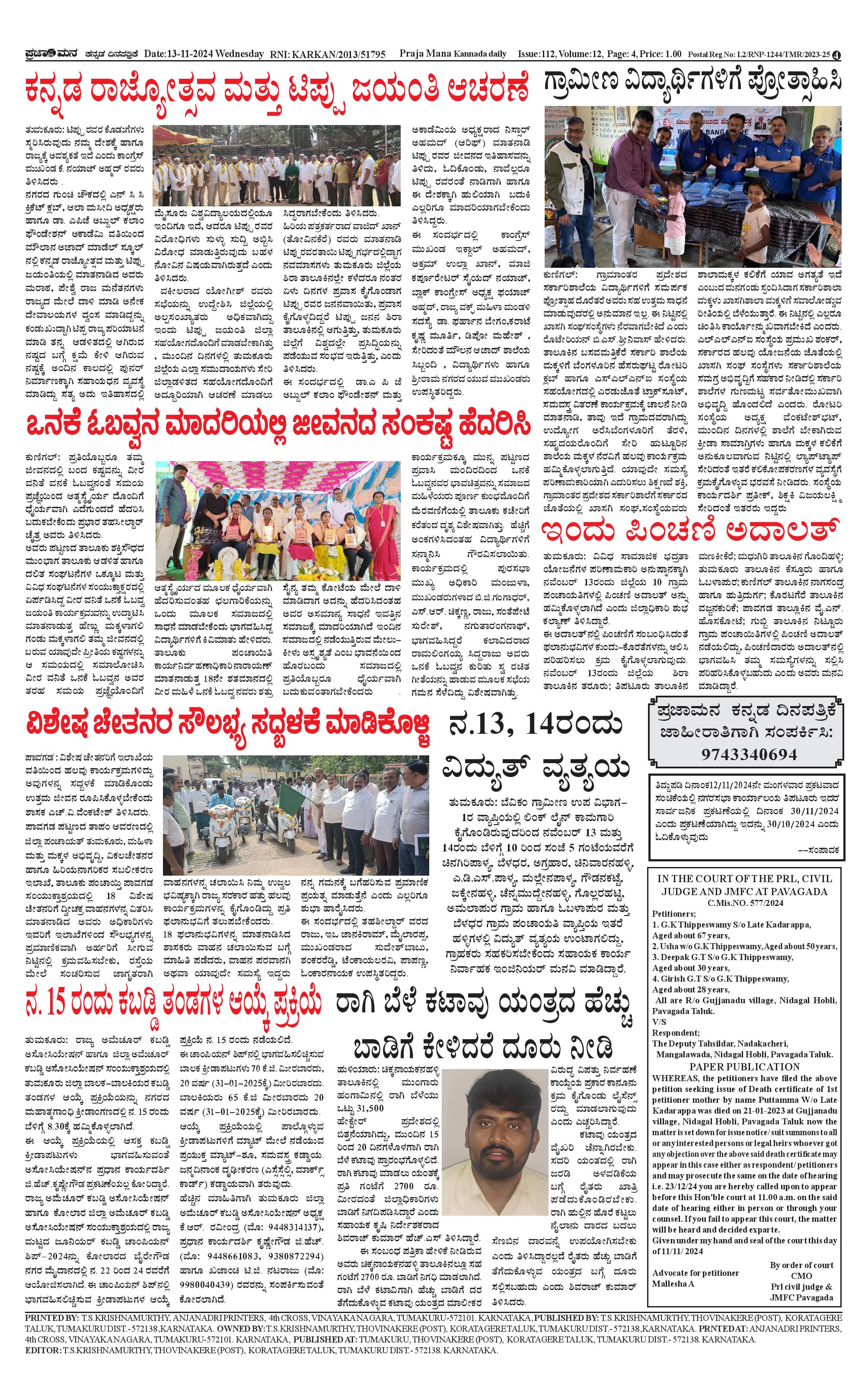 ಪ್ರಜಾಮನ 13 NOVEMBER 2024 Page: 4 November 13, 2024 << First << 4 >> Last >> Page 1Page 2Page 3Page 4 × ಪ್ರಜಾಮನ 13 NOVEMBER 2024 PRAJAMANA-page-001PRAJAMANA-page-002PRAJAMANA-page-003PRAJAMANA-page-004 << First << 4 >> Last >> PRAJAMANA-page-001PRAJAMANA-page-002PRAJAMANA-page-003PRAJAMANA-page-004 PRAJAMANA-page-004