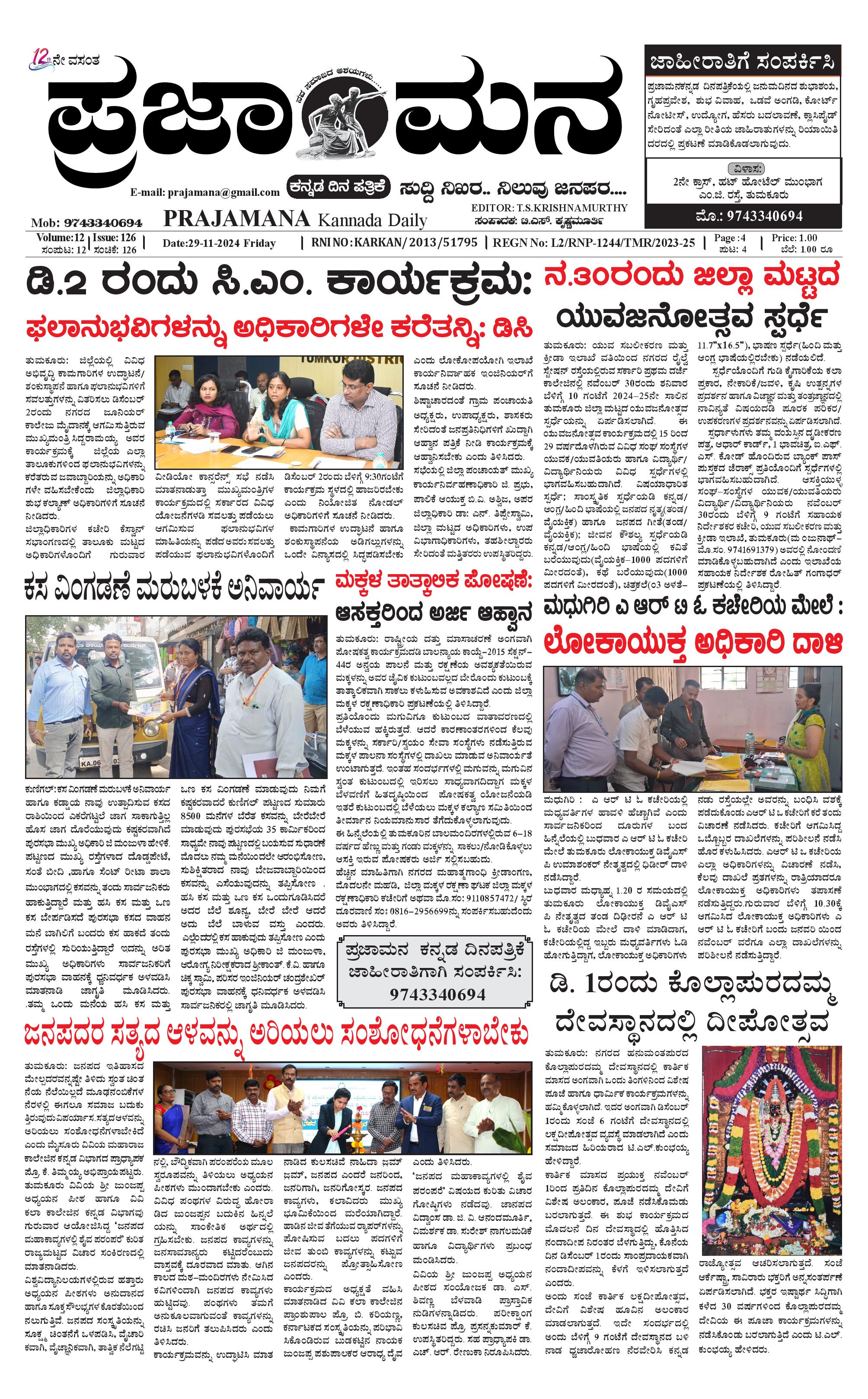 ಪ್ರಜಾಮನ 29 NOVEMBER 2024 November 29, 2024 << First << 1 >> Last >> Page 1Page 2Page 3Page 4 × ಪ್ರಜಾಮನ 29 NOVEMBER 2024 PRAJAMANA-page-001PRAJAMANA-page-002PRAJAMANA-page-003PRAJAMANA-page-004 << First << 1 >> Last >> PRAJAMANA-page-001PRAJAMANA-page-002PRAJAMANA-page-003PRAJAMANA-page-004 PRAJAMANA-page-001