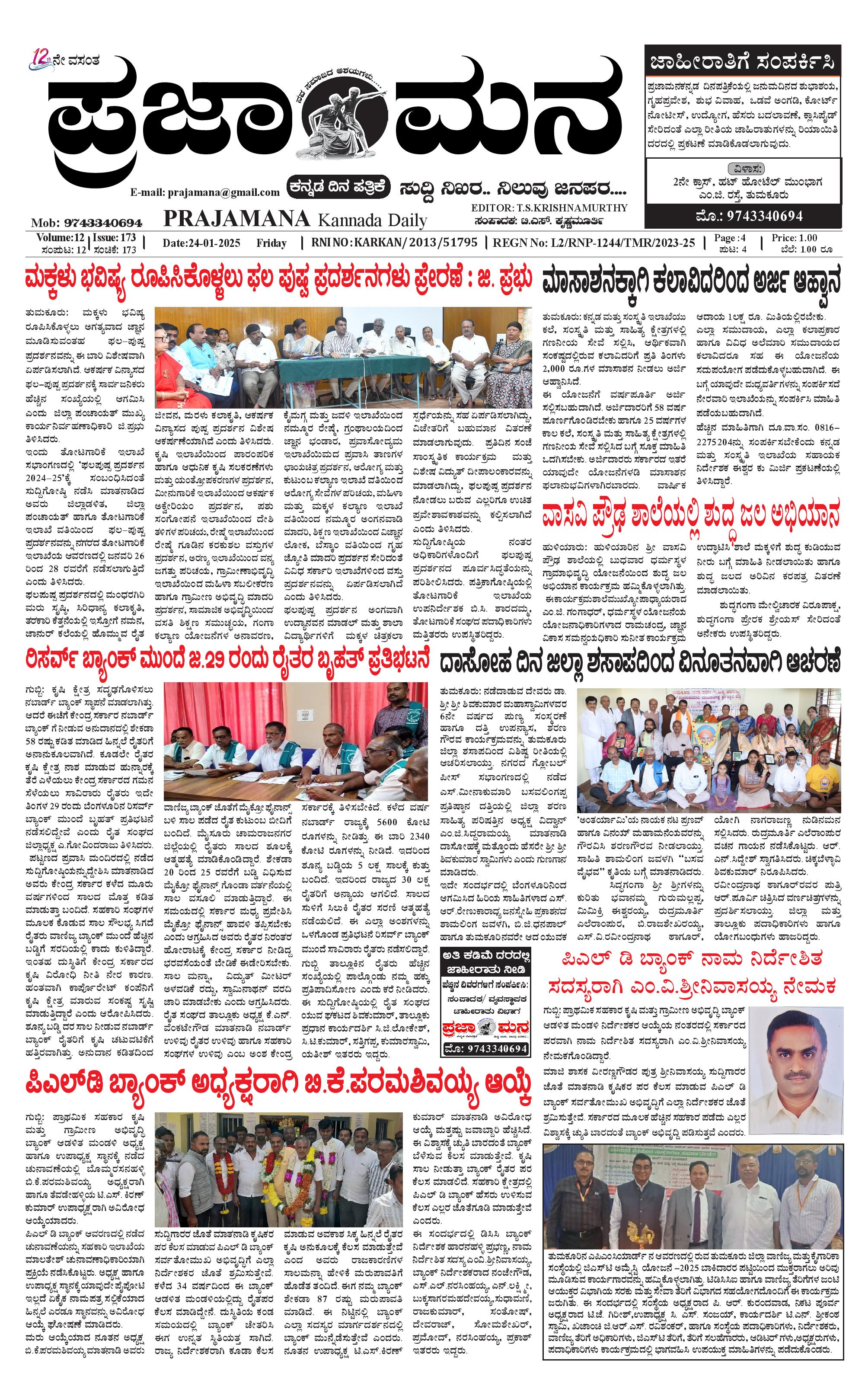 ಪ್ರಜಾಮನ 24 JANUARY 2025 January 24, 2025 << First << 1 >> Last >> Page 1Page 2Page 3Page 4 × ಪ್ರಜಾಮನ 24 JANUARY 2025 PRAJAMANA-page-001PRAJAMANA-page-002PRAJAMANA-page-003PRAJAMANA-page-004 << First << 1 >> Last >> PRAJAMANA-page-001PRAJAMANA-page-002PRAJAMANA-page-003PRAJAMANA-page-004 PRAJAMANA-page-001
