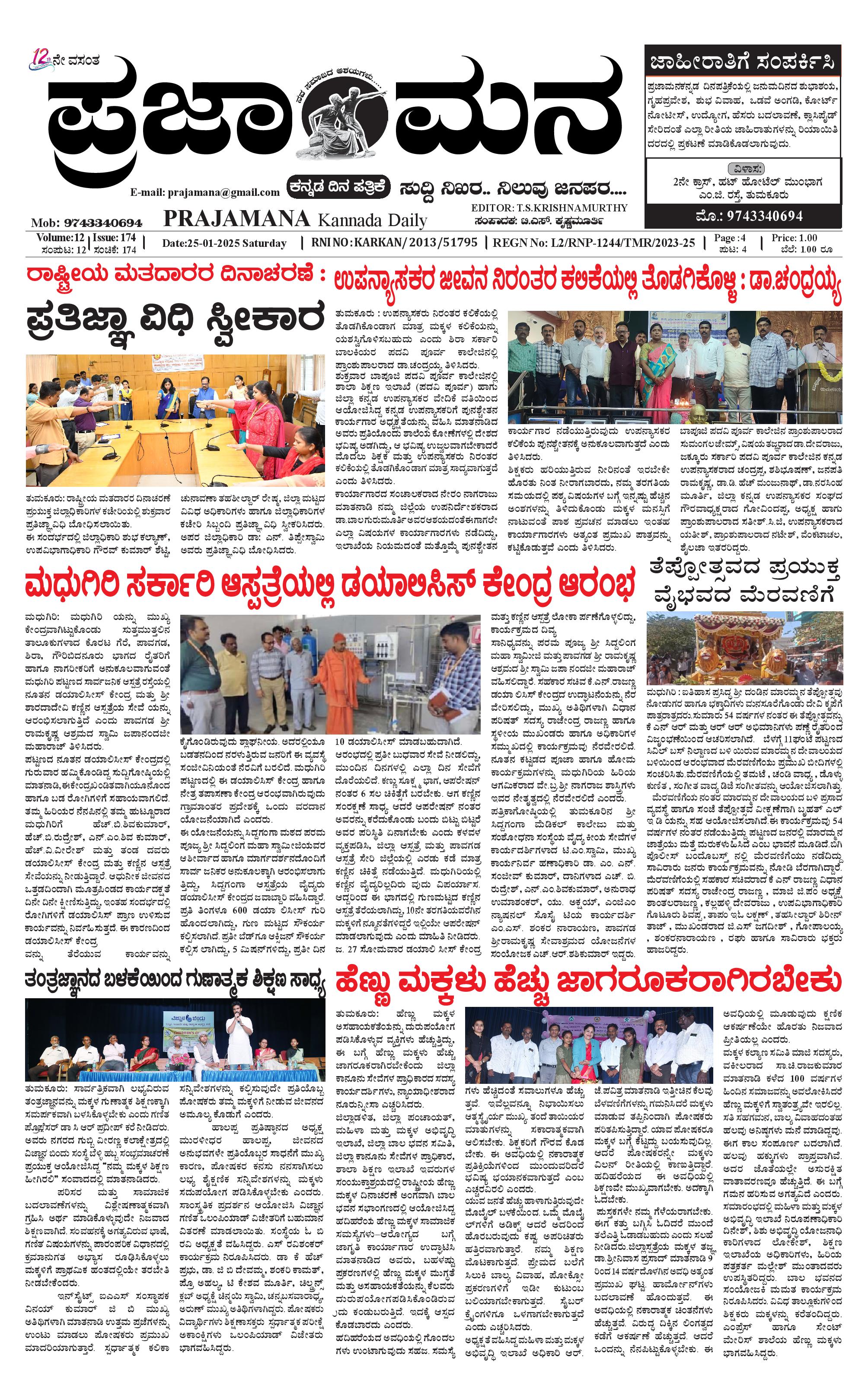 ಪ್ರಜಾಮನ 25 JANUARY 2025 January 25, 2025 << First << 1 >> Last >> Page 1Page 2Page 3Page 4 × ಪ್ರಜಾಮನ 25 JANUARY 2025 PRAJAMANA 1-page-001PRAJAMANA-page-002PRAJAMANA-page-003PRAJAMANA 1-page-004 << First << 1 >> Last >> PRAJAMANA 1-page-001PRAJAMANA-page-002PRAJAMANA-page-003PRAJAMANA 1-page-004 PRAJAMANA 1-page-001