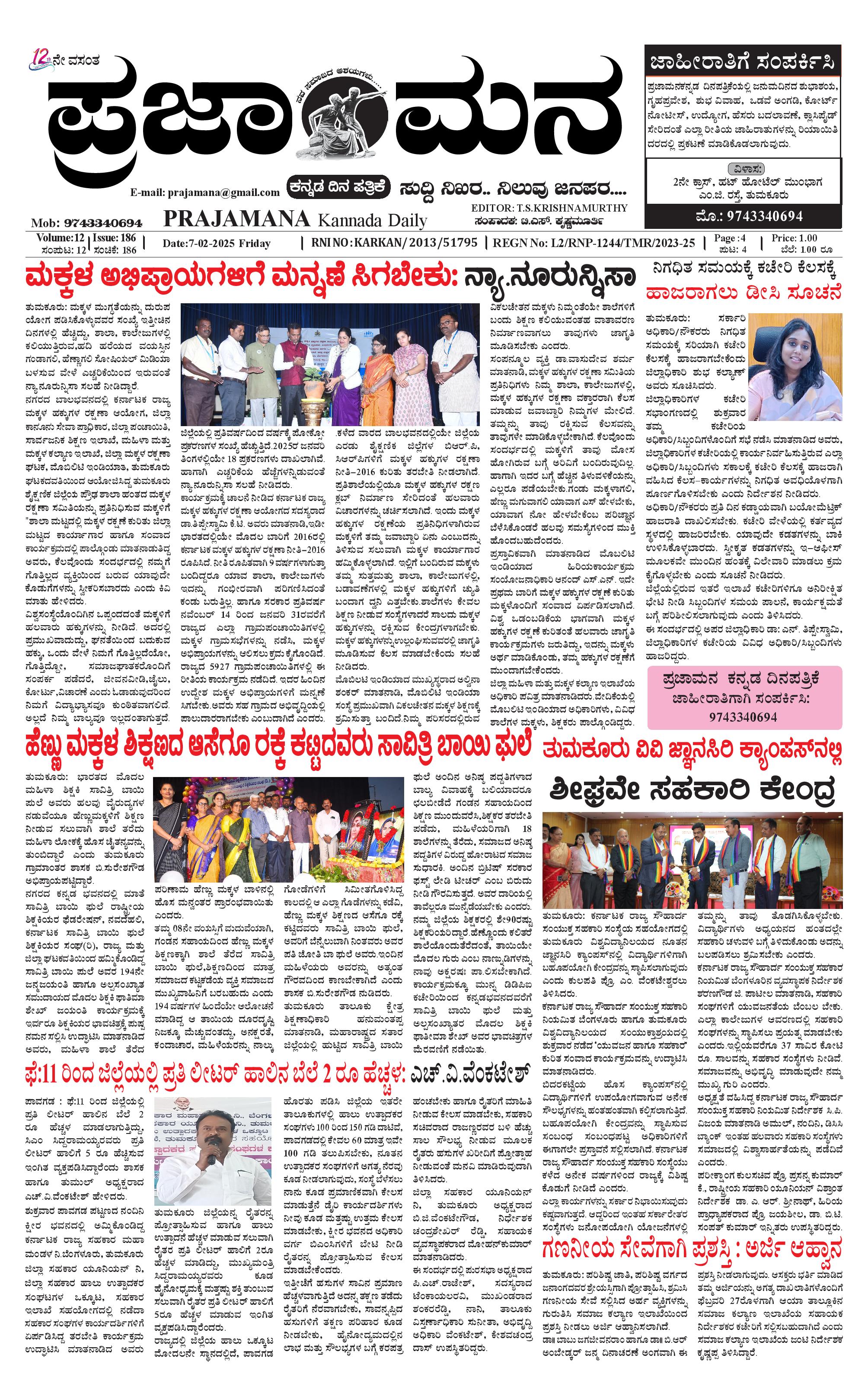 ಪ್ರಜಾಮನ 8 FEBRUARY2025 February 08, 2025 << First << 1 >> Last >> Page 1Page 2Page 3Page 4 × ಪ್ರಜಾಮನ 8 FEBRUARY2025 PRAJAMANA-page-001PRAJAMANA-page-002PRAJAMANA-page-003PRAJAMANA-page-004 << First << 1 >> Last >> PRAJAMANA-page-001PRAJAMANA-page-002PRAJAMANA-page-003PRAJAMANA-page-004 PRAJAMANA-page-001
