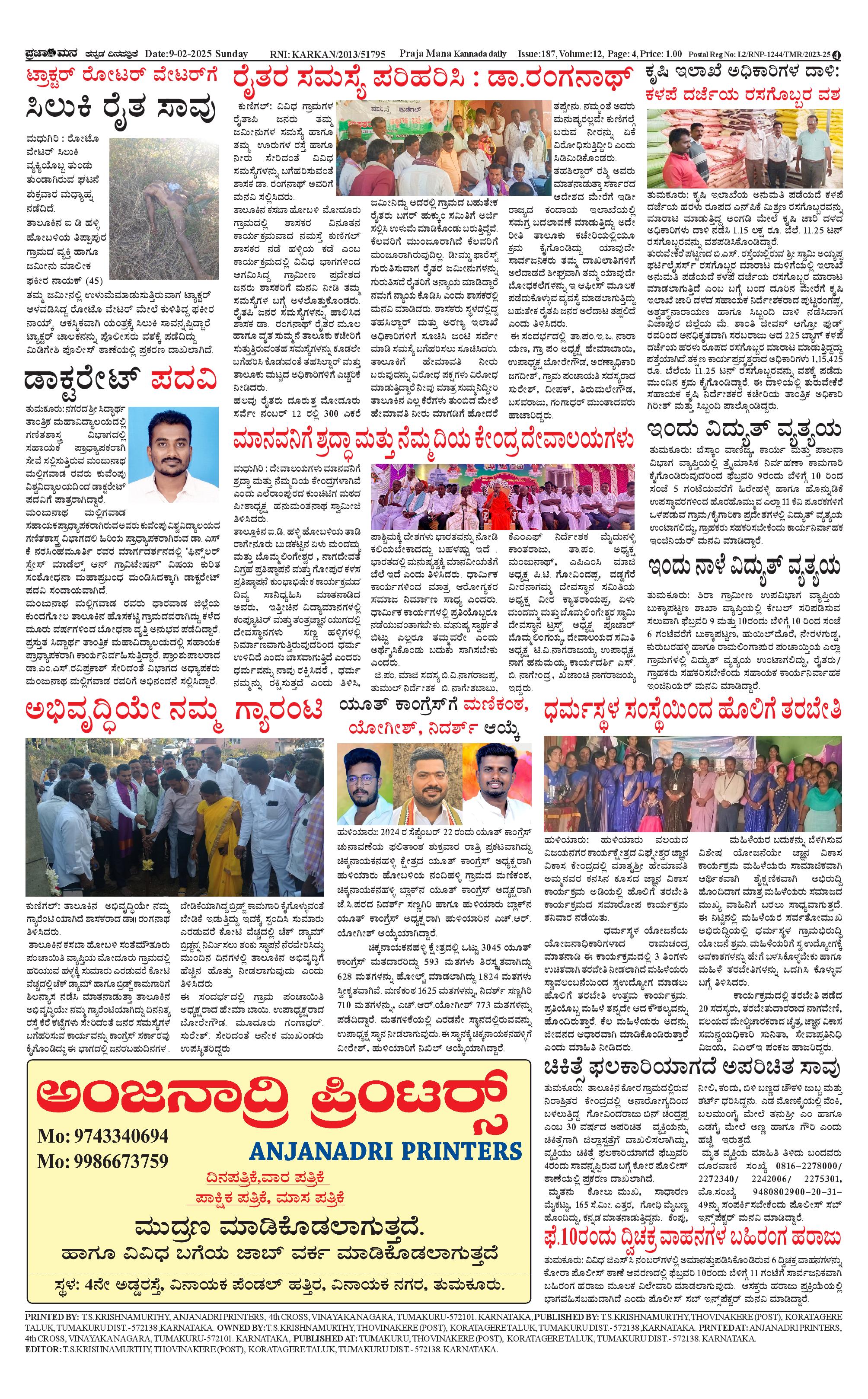 ಪ್ರಜಾಮನ 9 FEBRUARY2025 Page: 4 February 09, 2025 << First << 4 >> Last >> Page 1Page 2Page 3Page 4 × ಪ್ರಜಾಮನ 9 FEBRUARY2025 PRAJAMANA-page-001PRAJAMANA-page-002PRAJAMANA-page-003PRAJAMANA-page-004 << First << 4 >> Last >> PRAJAMANA-page-001PRAJAMANA-page-002PRAJAMANA-page-003PRAJAMANA-page-004 PRAJAMANA-page-004