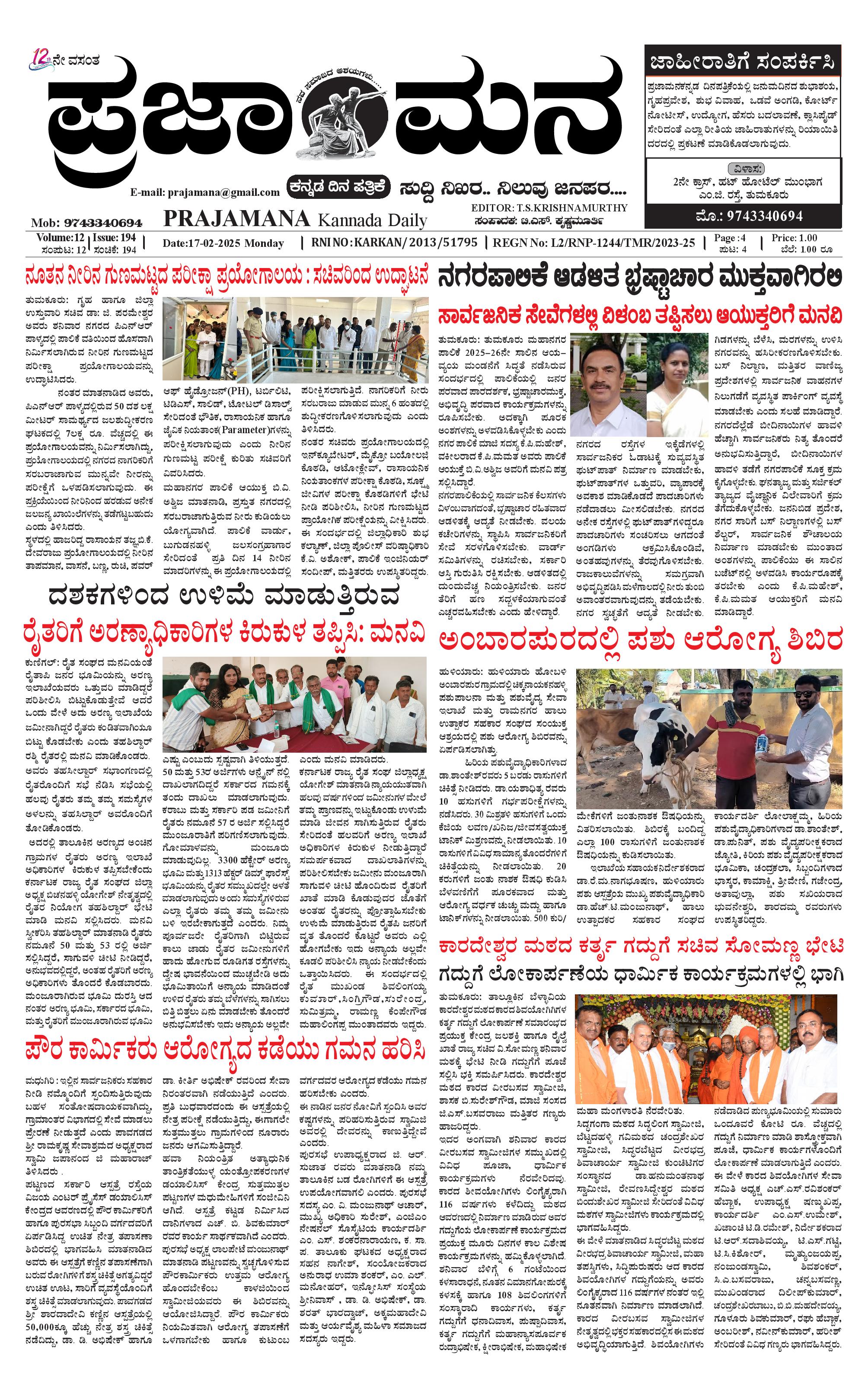 ಪ್ರಜಾಮನ 17 FEBRUARY2025 February 17, 2025 << First << 1 >> Last >> Page 1Page 2Page 3Page 4 × ಪ್ರಜಾಮನ 17 FEBRUARY2025 PRAJAMANA 1-page-001PRAJAMANA 1-page-002PRAJAMANA 1-page-003PRAJAMANA 1-page-004 << First << 1 >> Last >> PRAJAMANA 1-page-001PRAJAMANA 1-page-002PRAJAMANA 1-page-003PRAJAMANA 1-page-004 PRAJAMANA 1-page-001