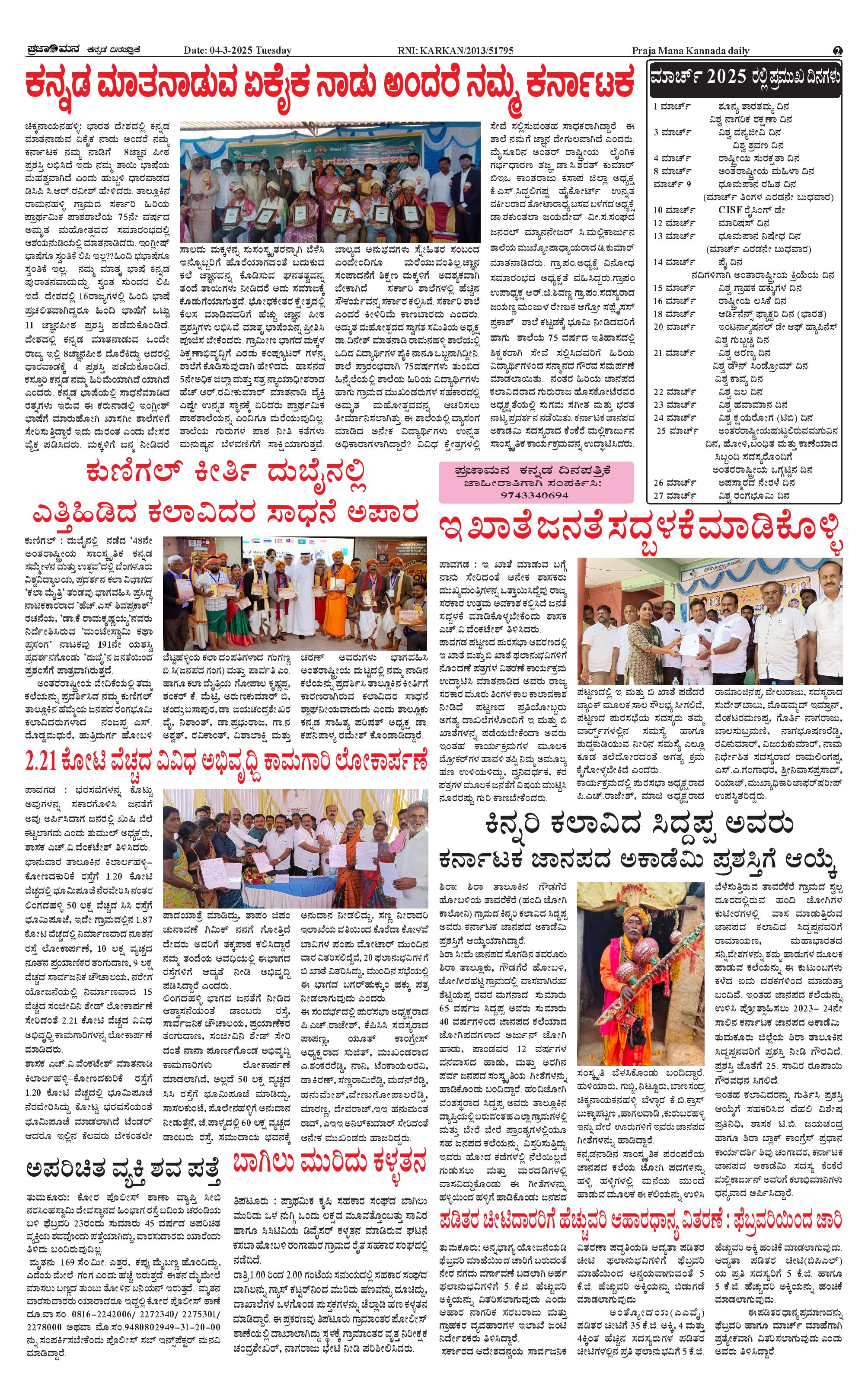 ಪ್ರಜಾಮನ 04 MARCH 2025 Page: 2 March 04, 2025 << First << 2 >> Last >> Page 1Page 2Page 3Page 4 × ಪ್ರಜಾಮನ 04 MARCH 2025 PRAJAMANA 1-page-001PRAJAMANA 1-page-002PRAJAMANA 1-page-003PRAJAMANA 1-page-004 << First << 2 >> Last >> PRAJAMANA 1-page-001PRAJAMANA 1-page-002PRAJAMANA 1-page-003PRAJAMANA 1-page-004 PRAJAMANA 1-page-002