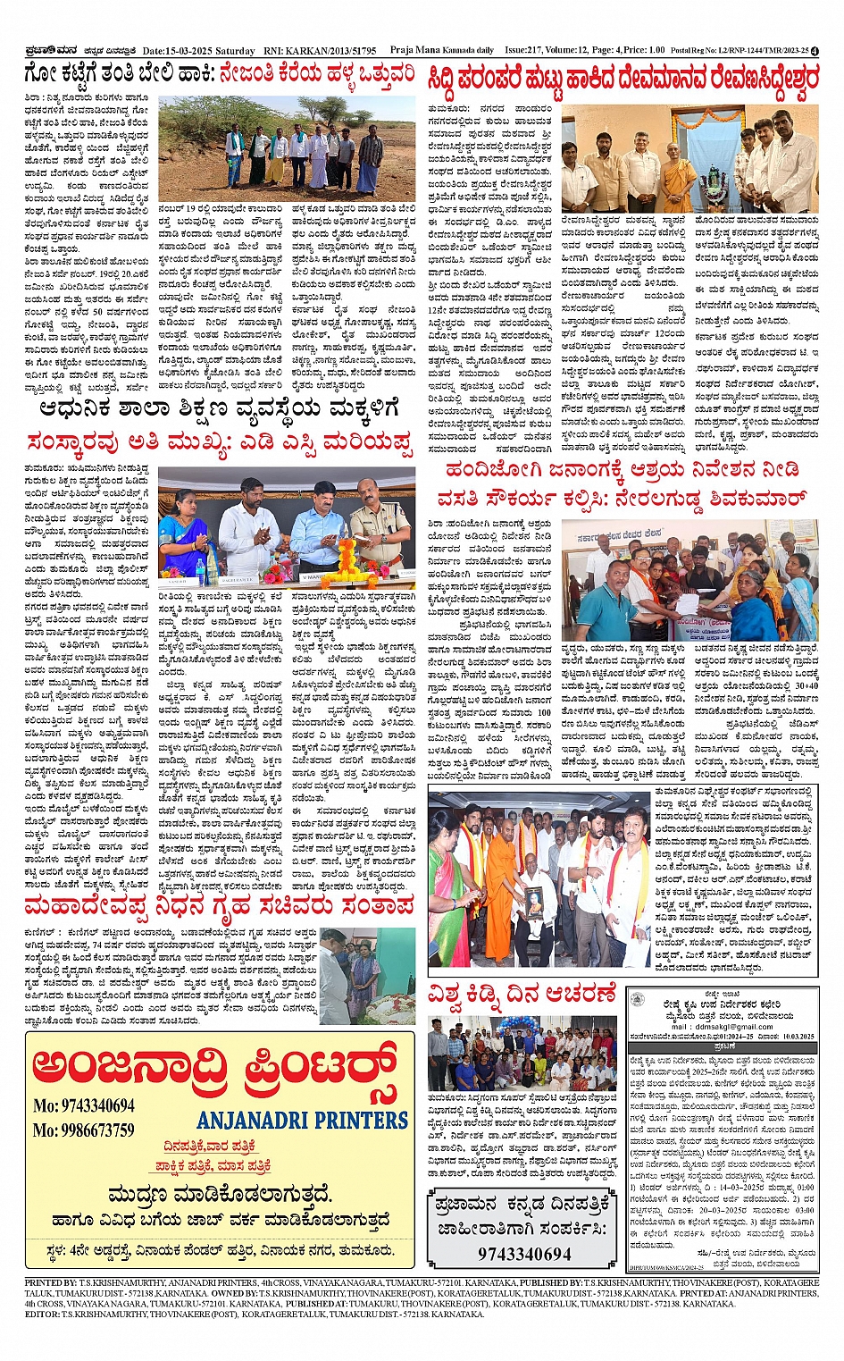 ಪ್ರಜಾಮನ 15 MARCH 2025 Page: 4 March 15, 2025 << First << 4 >> Last >> Page 1Page 2Page 3Page 4 × ಪ್ರಜಾಮನ 15 MARCH 2025 PRAJAMANA-page-001PRAJAMANA-page-002PRAJAMANA-page-003PRAJAMANA-page-004 << First << 4 >> Last >> PRAJAMANA-page-001PRAJAMANA-page-002PRAJAMANA-page-003PRAJAMANA-page-004 PRAJAMANA-page-004