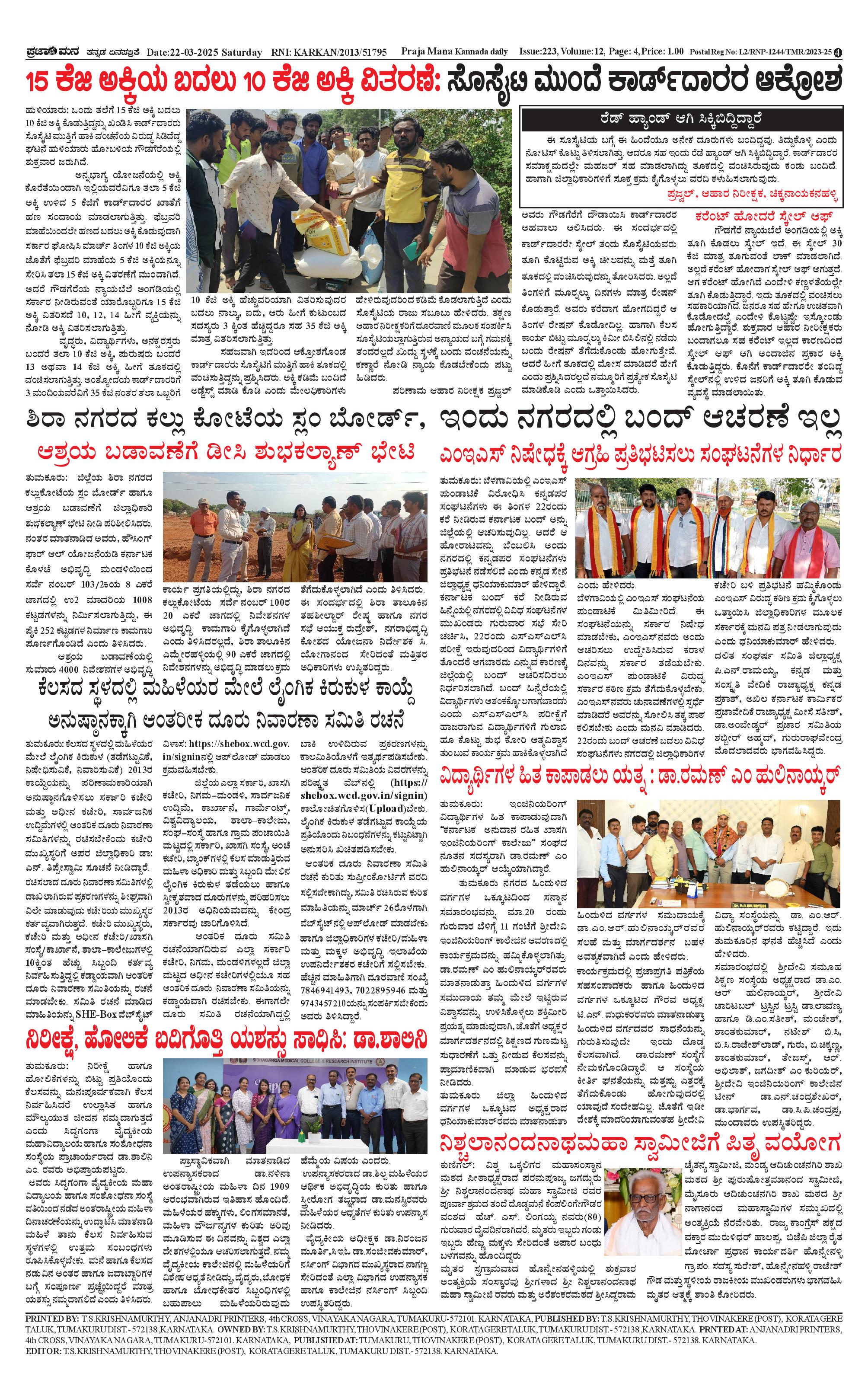 ಪ್ರಜಾಮನ 22 MARCH 2025 Page: 4 March 22, 2025 << First << 4 >> Last >> Page 1Page 2Page 3Page 4 × ಪ್ರಜಾಮನ 22 MARCH 2025 PRAJAMANA 11-page-001PRAJAMANA-page-002PRAJAMANA-page-003PRAJAMANA 11-page-004 << First << 4 >> Last >> PRAJAMANA 11-page-001PRAJAMANA-page-002PRAJAMANA-page-003PRAJAMANA 11-page-004 PRAJAMANA 11-page-004