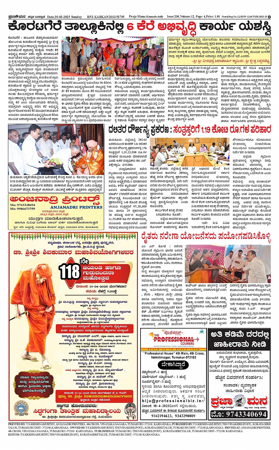 ಪ್ರಜಾಮನ 30 MARCH 2025 Page: 4 March 30, 2025 << First << 4 >> Last >> Page 1Page 2Page 3Page 4 × ಪ್ರಜಾಮನ 30 MARCH 2025 PRAJAMANA 11-page-001PRAJAMANA-page-002PRAJAMANA-page-003-1PRAJAMANA 11-page-004 << First << 4 >> Last >> PRAJAMANA 11-page-001PRAJAMANA-page-002PRAJAMANA-page-003-1PRAJAMANA 11-page-004 PRAJAMANA 11-page-004