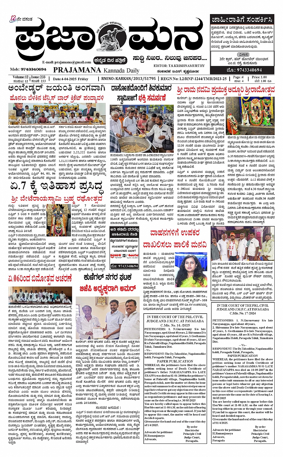 ಪ್ರಜಾಮನ 04 APRIL 2025 April 04, 2025 << First << 1 >> Last >> Page 1Page 2Page 3Page 4 × ಪ್ರಜಾಮನ 04 APRIL 2025 PRAJAMANA-page-001PRAJAMANA 11-page-002PRAJAMANA 11-page-003PRAJAMANA-page-004 << First << 1 >> Last >> PRAJAMANA-page-001PRAJAMANA 11-page-002PRAJAMANA 11-page-003PRAJAMANA-page-004 PRAJAMANA-page-001