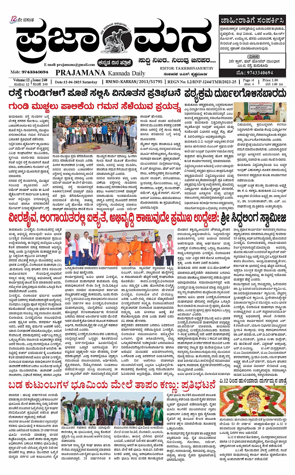 ಪ್ರಜಾಮನ 12 APRIL 2025 April 12, 2025 << First << 1 >> Last >> Page 1Page 2Page 3Page 4 × ಪ್ರಜಾಮನ 12 APRIL 2025 PRAJAMANA-page-001PRAJAMANA-page-002PRAJAMANA-page-003PRAJAMANA-page-004 << First << 1 >> Last >> PRAJAMANA-page-001PRAJAMANA-page-002PRAJAMANA-page-003PRAJAMANA-page-004 PRAJAMANA-page-001