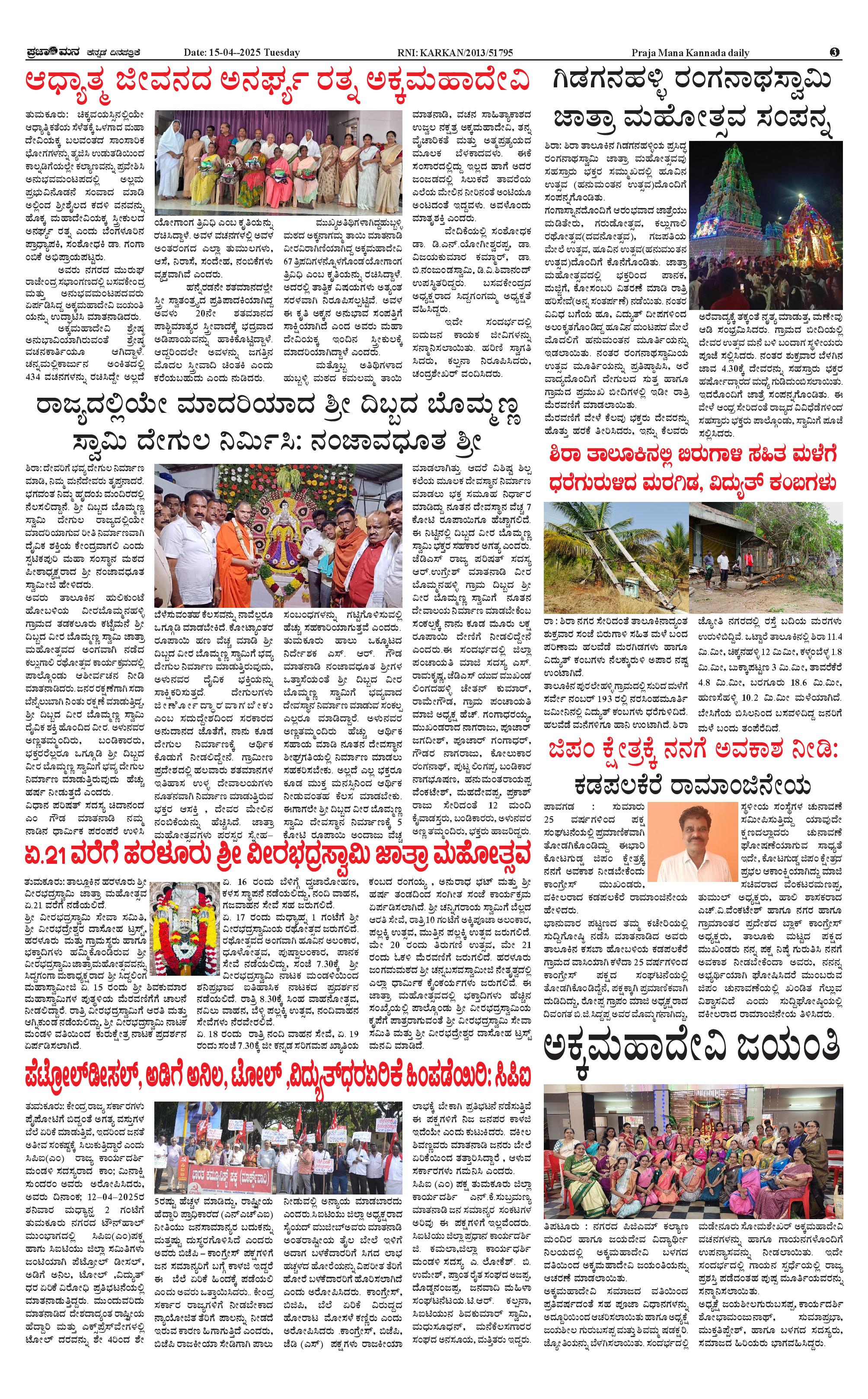 ಪ್ರಜಾಮನ 15 APRIL 2025 Page: 3 April 15, 2025 << First << 3 >> Last >> Page 1Page 2Page 3Page 4 × ಪ್ರಜಾಮನ 15 APRIL 2025 PRAJAMANA 11-page-001PRAJAMANA 11-page-002PRAJAMANA 11-page-003PRAJAMANA 11-page-004 << First << 3 >> Last >> PRAJAMANA 11-page-001PRAJAMANA 11-page-002PRAJAMANA 11-page-003PRAJAMANA 11-page-004 PRAJAMANA 11-page-003