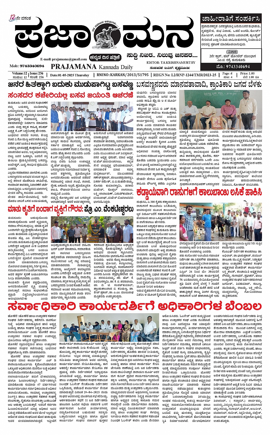 ಪ್ರಜಾಮನ 1 MAY 2025 May 01, 2025 << First << 1 >> Last >> Page 1Page 2Page 3Page 4 × ಪ್ರಜಾಮನ 1 MAY 2025 PRAJAMANA-page-001PRAJAMANA-page-002PRAJAMANA-page-003PRAJAMANA-page-004 << First << 1 >> Last >> PRAJAMANA-page-001PRAJAMANA-page-002PRAJAMANA-page-003PRAJAMANA-page-004 PRAJAMANA-page-001