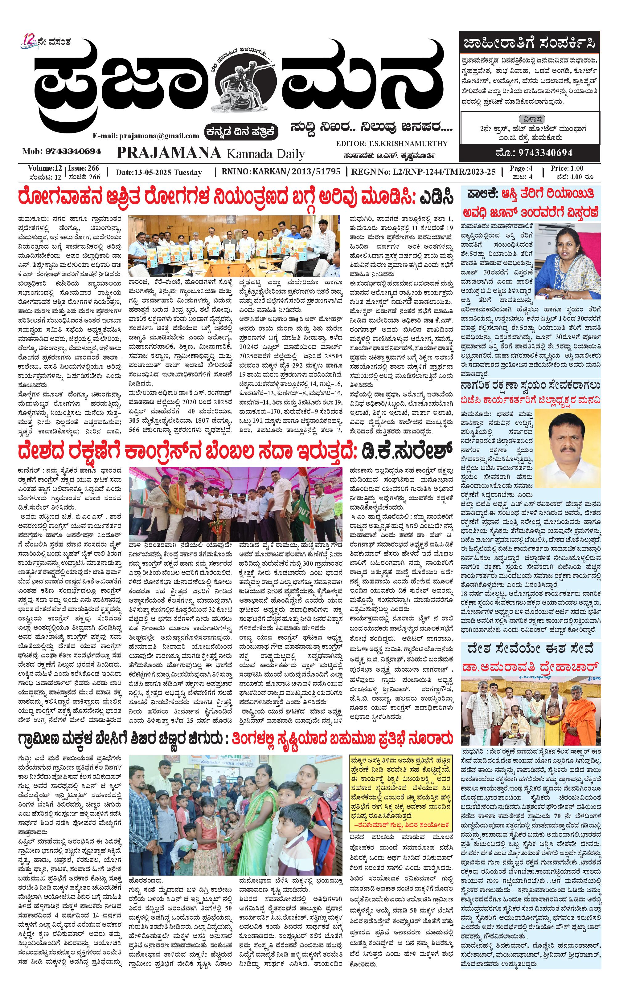ಪ್ರಜಾಮನ 13 MAY 2025 May 13, 2025 << First << 1 >> Last >> Page 1Page 2Page 3Page 4 × ಪ್ರಜಾಮನ 13 MAY 2025 PRAJAMANA-page-001PRAJAMANA-page-002PRAJAMANA-page-003PRAJAMANA-page-004-2 << First << 1 >> Last >> PRAJAMANA-page-001PRAJAMANA-page-002PRAJAMANA-page-003PRAJAMANA-page-004-2 PRAJAMANA-page-001