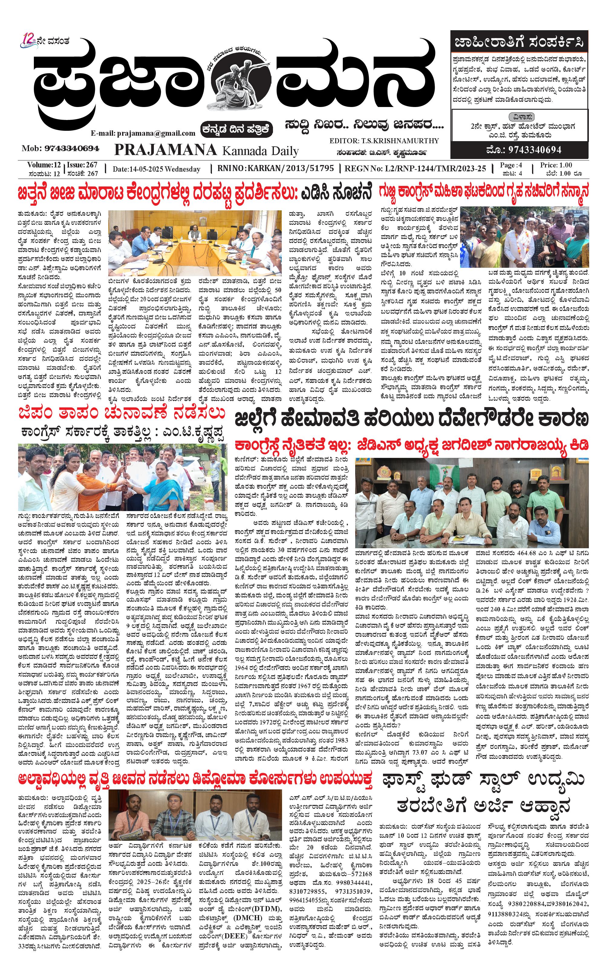 ಪ್ರಜಾಮನ 14 MAY 2025 May 14, 2025 << First << 1 >> Last >> Page 1Page 2Page 3Page 4 × ಪ್ರಜಾಮನ 14 MAY 2025 PRAJAMANA.11-page-001PRAJAMANA-page-002PRAJAMANA-page-003PRAJAMANA.11-page-004 << First << 1 >> Last >> PRAJAMANA.11-page-001PRAJAMANA-page-002PRAJAMANA-page-003PRAJAMANA.11-page-004 PRAJAMANA.11-page-001