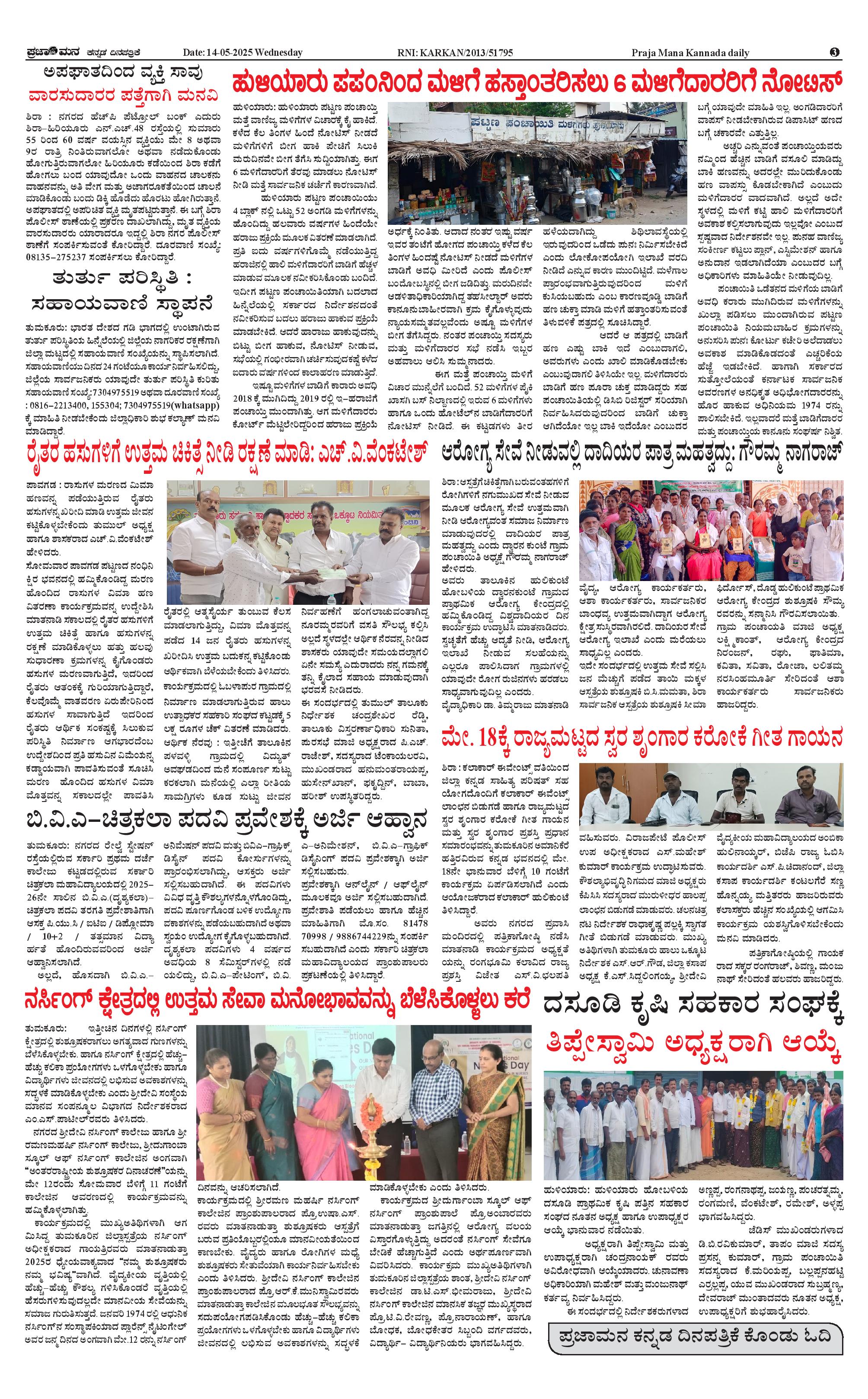 ಪ್ರಜಾಮನ 14 MAY 2025 Page: 3 May 14, 2025 << First << 3 >> Last >> Page 1Page 2Page 3Page 4 × ಪ್ರಜಾಮನ 14 MAY 2025 PRAJAMANA.11-page-001PRAJAMANA-page-002PRAJAMANA-page-003PRAJAMANA.11-page-004 << First << 3 >> Last >> PRAJAMANA.11-page-001PRAJAMANA-page-002PRAJAMANA-page-003PRAJAMANA.11-page-004 PRAJAMANA-page-003