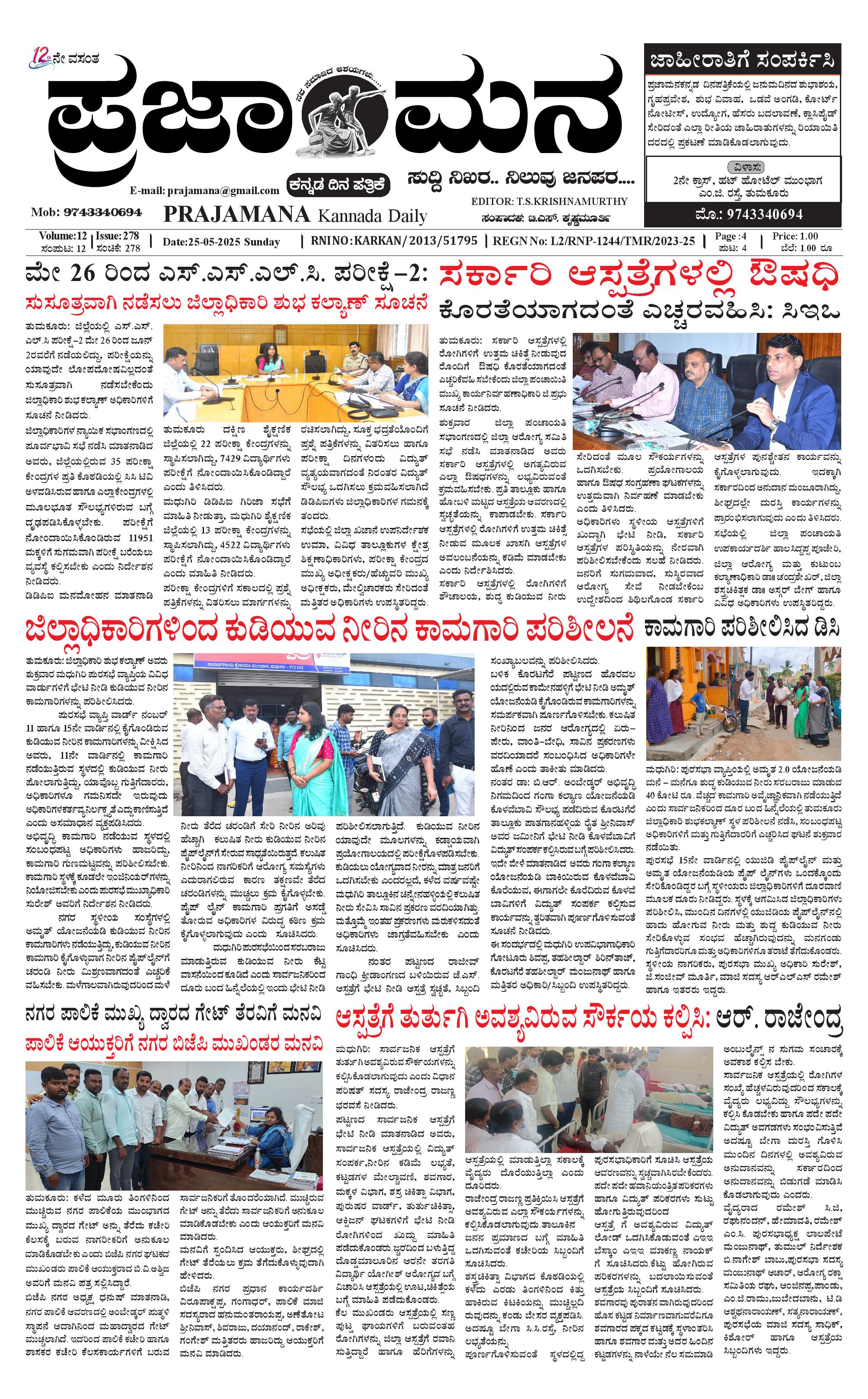 ಪ್ರಜಾಮನ 25 MAY 2025 May 25, 2025 << First << 1 >> Last >> Page 1Page 2Page 3Page 4 × ಪ್ರಜಾಮನ 25 MAY 2025 PRAJAMANA.11-page-001PRAJAMANA.11-page-002PRAJAMANA.11-page-003PRAJAMANA.11-page-004 << First << 1 >> Last >> PRAJAMANA.11-page-001PRAJAMANA.11-page-002PRAJAMANA.11-page-003PRAJAMANA.11-page-004 PRAJAMANA.11-page-001