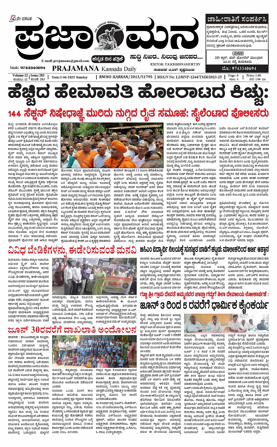 ಪ್ರಜಾಮನ 1 JUNE 2025 June 01, 2025 << First << 1 >> Last >> Page 1Page 2Page 3Page 4 × ಪ್ರಜಾಮನ 1 JUNE 2025 PRAJAMANA-page-001PRAJAMANA-page-002PRAJAMANA-page-003PRAJAMANA-page-004 << First << 1 >> Last >> PRAJAMANA-page-001PRAJAMANA-page-002PRAJAMANA-page-003PRAJAMANA-page-004 PRAJAMANA-page-001
