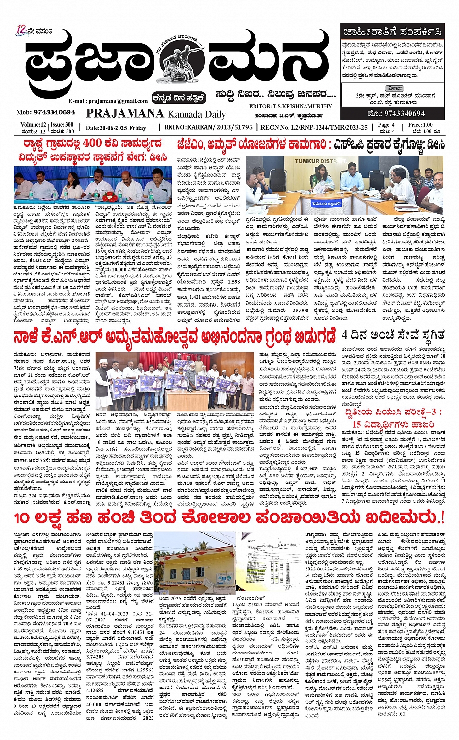 ಪ್ರಜಾಮನ 20 JUNE 2025 June 20, 2025 << First << 1 >> Last >> Page 1Page 2Page 3Page 4 × ಪ್ರಜಾಮನ 20 JUNE 2025 PRAJAMANA-page-001PRAJAMANA-page-002PRAJAMANA-page-003PRAJAMANA-page-004 << First << 1 >> Last >> PRAJAMANA-page-001PRAJAMANA-page-002PRAJAMANA-page-003PRAJAMANA-page-004 PRAJAMANA-page-001