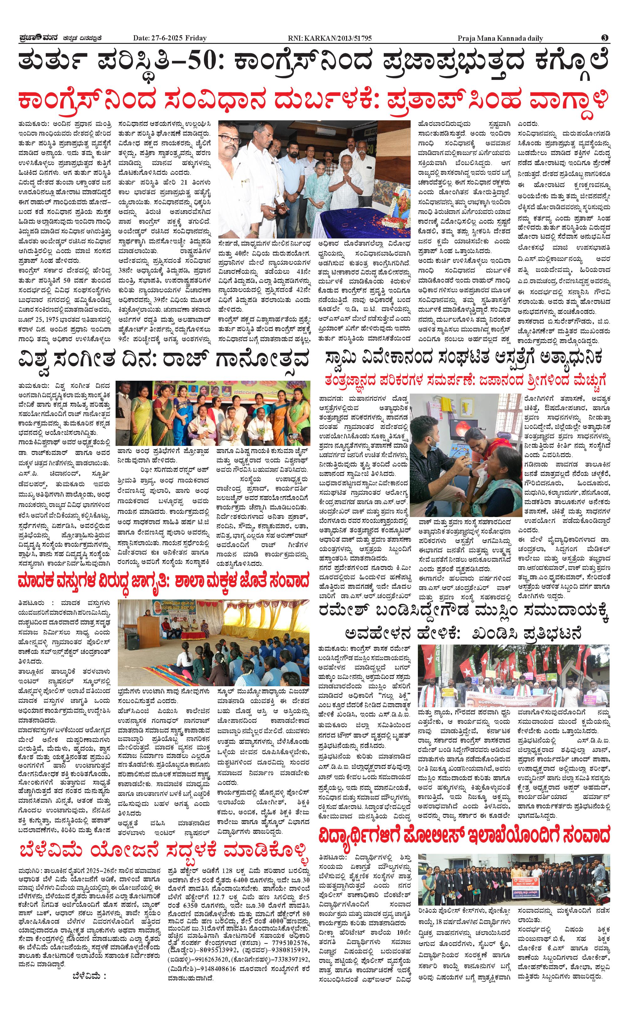 ಪ್ರಜಾಮನ 27 JUNE 2025 Page: 3 June 27, 2025 << First << 3 >> Last >> Page 1Page 2Page 3Page 4 × ಪ್ರಜಾಮನ 27 JUNE 2025 PRAJAMANA-page-001PRAJAMANA.11-page-002PRAJAMANA.11-page-003PRAJAMANA-page-004 << First << 3 >> Last >> PRAJAMANA-page-001PRAJAMANA.11-page-002PRAJAMANA.11-page-003PRAJAMANA-page-004 PRAJAMANA.11-page-003