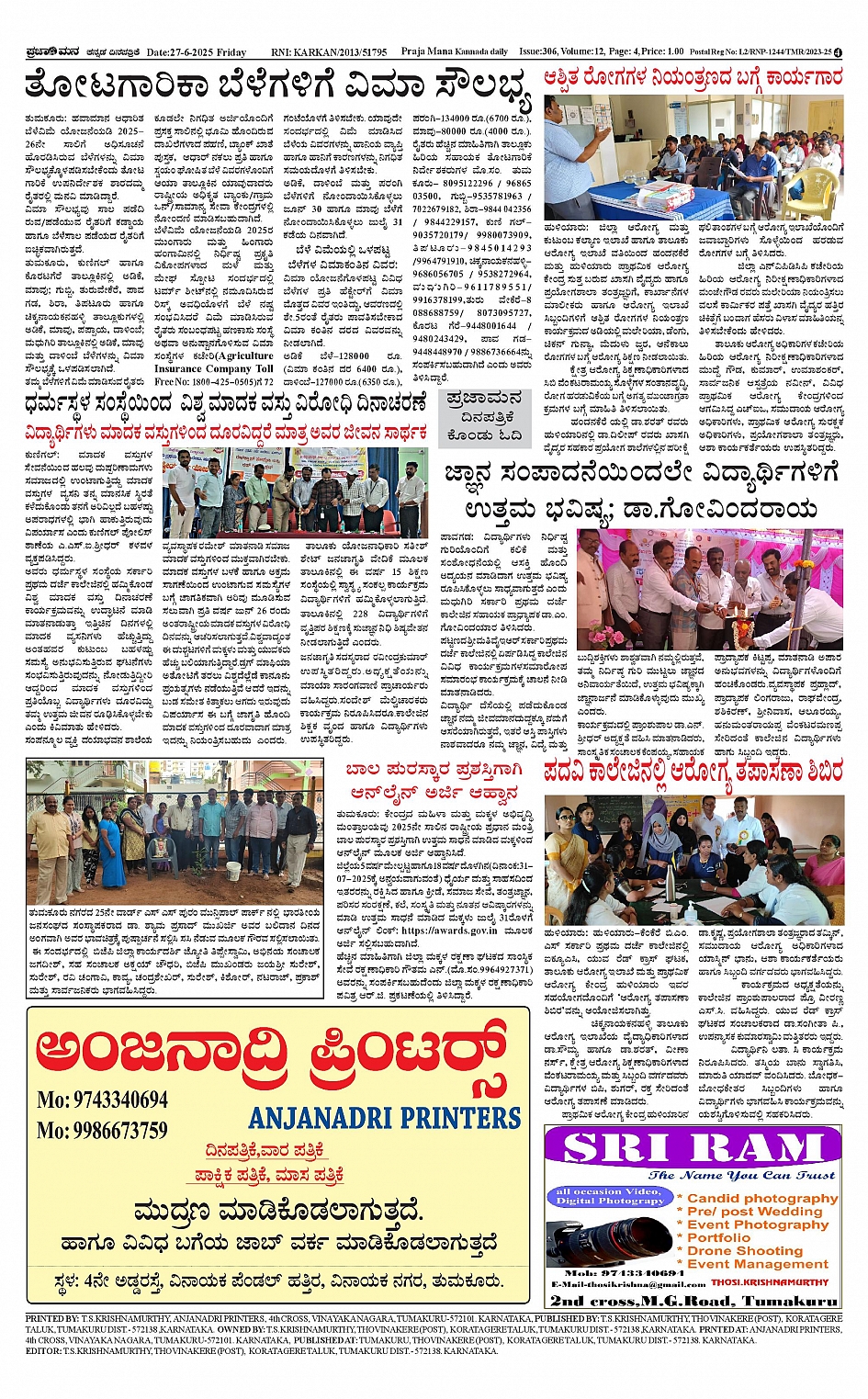 ಪ್ರಜಾಮನ 27 JUNE 2025 Page: 4 June 27, 2025 << First << 4 >> Last >> Page 1Page 2Page 3Page 4 × ಪ್ರಜಾಮನ 27 JUNE 2025 PRAJAMANA-page-001PRAJAMANA.11-page-002PRAJAMANA.11-page-003PRAJAMANA-page-004 << First << 4 >> Last >> PRAJAMANA-page-001PRAJAMANA.11-page-002PRAJAMANA.11-page-003PRAJAMANA-page-004 PRAJAMANA-page-004