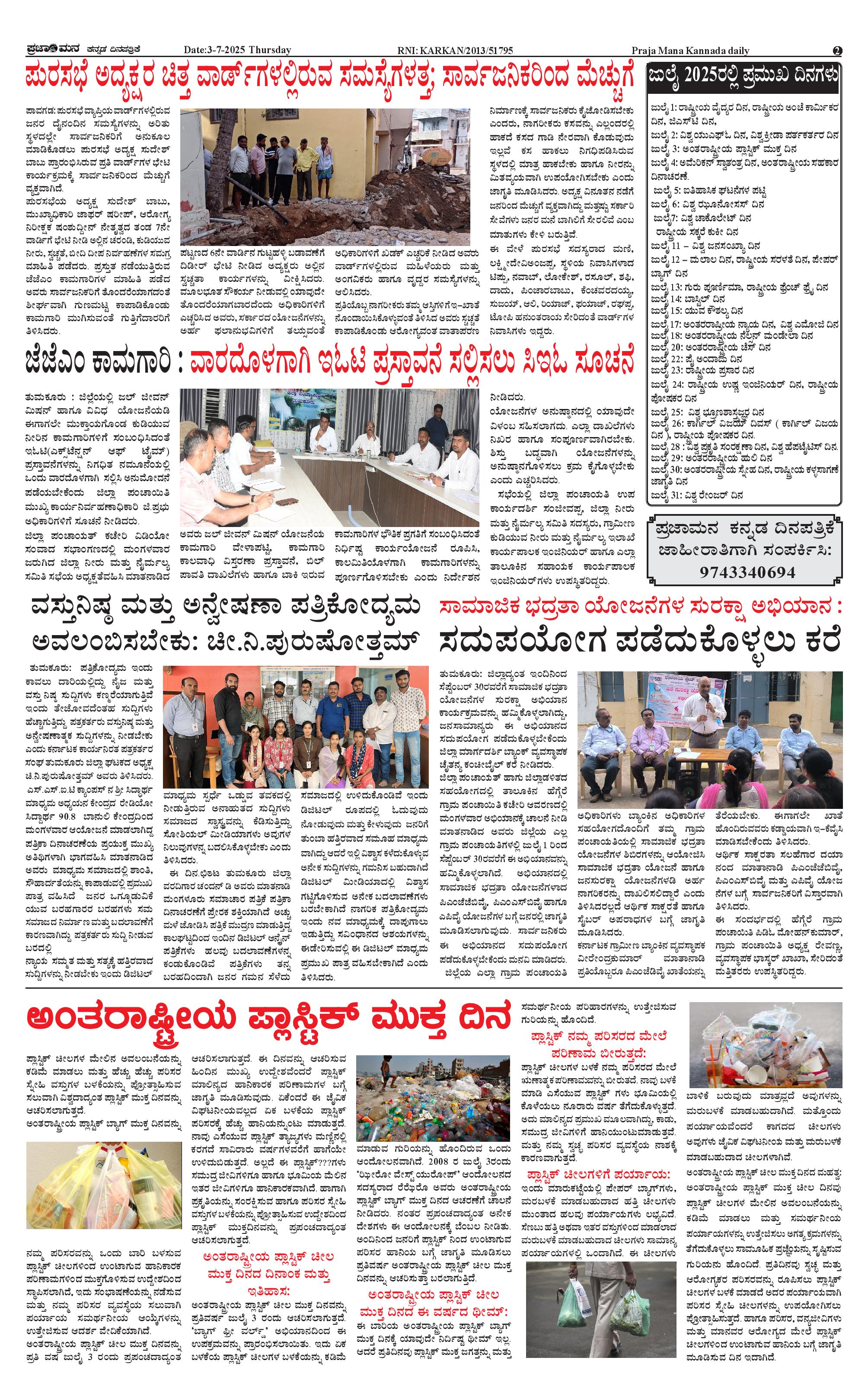 ಪ್ರಜಾಮನ 03 JULY 2025 Page: 2 July 03, 2025 << First << 2 >> Last >> Page 1Page 2Page 3Page 4 × ಪ್ರಜಾಮನ 03 JULY 2025 PRAJAMANA-page-001PRAJAMANA-page-002-2PRAJAMANA-page-003PRAJAMANA-page-004 << First << 2 >> Last >> PRAJAMANA-page-001PRAJAMANA-page-002-2PRAJAMANA-page-003PRAJAMANA-page-004 PRAJAMANA-page-002-2