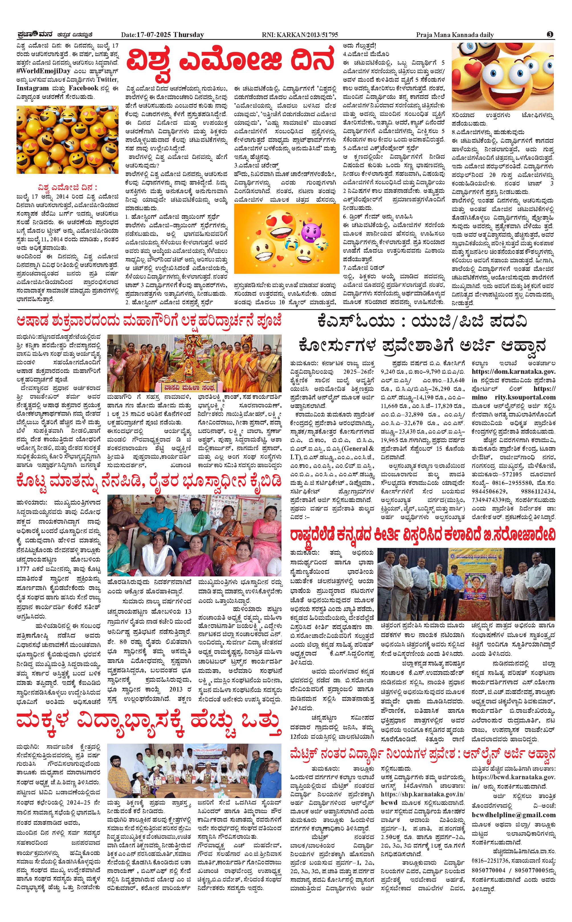 ಪ್ರಜಾಮನ 17 JULY 2025 Page: 3 July 17, 2025 << First << 3 >> Last >> Page 1Page 2Page 3Page 4 × ಪ್ರಜಾಮನ 17 JULY 2025 PRAJAMANA-page-001PRAJAMANA-page-002PRAJAMANA-page-003PRAJAMANA-page-004 << First << 3 >> Last >> PRAJAMANA-page-001PRAJAMANA-page-002PRAJAMANA-page-003PRAJAMANA-page-004 PRAJAMANA-page-003