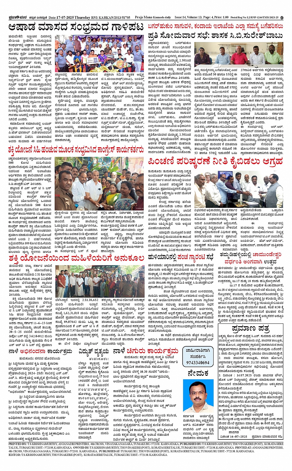 ಪ್ರಜಾಮನ 17 JULY 2025 Page: 4 July 17, 2025 << First << 4 >> Last >> Page 1Page 2Page 3Page 4 × ಪ್ರಜಾಮನ 17 JULY 2025 PRAJAMANA-page-001PRAJAMANA-page-002PRAJAMANA-page-003PRAJAMANA-page-004 << First << 4 >> Last >> PRAJAMANA-page-001PRAJAMANA-page-002PRAJAMANA-page-003PRAJAMANA-page-004 PRAJAMANA-page-004