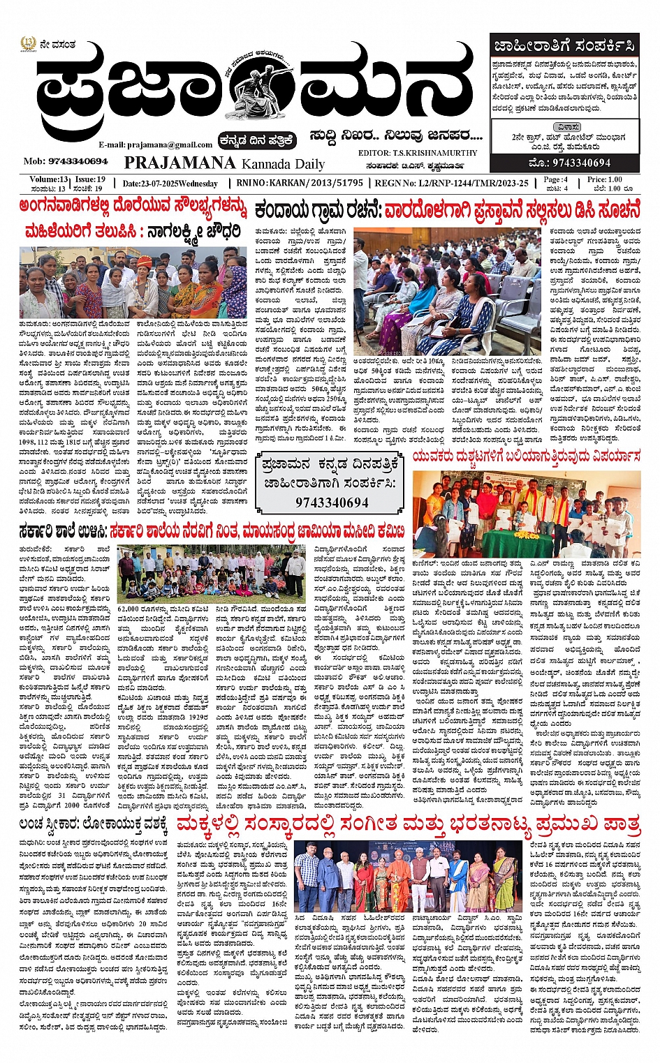 ಪ್ರಜಾಮನ 23 JULY 2025 July 23, 2025 << First << 1 >> Last >> Page 1Page 2Page 3Page 4 × ಪ್ರಜಾಮನ 23 JULY 2025 PRAJAMANA-page-001PRAJAMANA-page-002PRAJAMANA-page-003PRAJAMANA-page-004 << First << 1 >> Last >> PRAJAMANA-page-001PRAJAMANA-page-002PRAJAMANA-page-003PRAJAMANA-page-004 PRAJAMANA-page-001