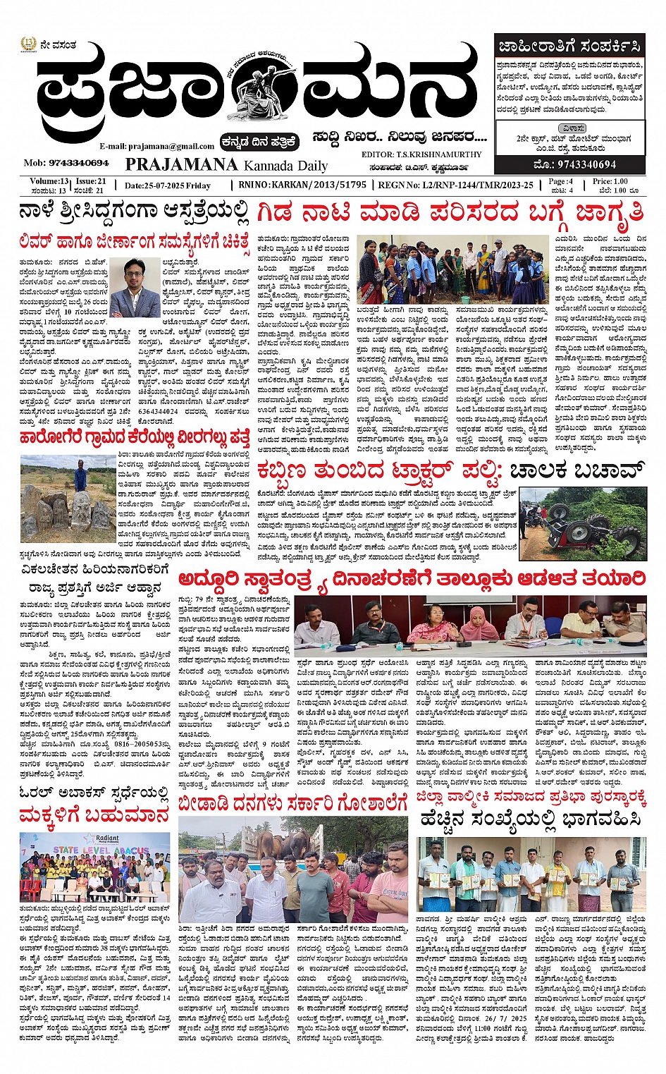 ಪ್ರಜಾಮನ 25 JULY 2025 July 25, 2025 << First << 1 >> Last >> Page 1Page 2Page 3Page 4 × ಪ್ರಜಾಮನ 25 JULY 2025 PRAJAMANA-page-001PRAJAMANA-page-002PRAJAMANA-page-003PRAJAMANA-page-004 << First << 1 >> Last >> PRAJAMANA-page-001PRAJAMANA-page-002PRAJAMANA-page-003PRAJAMANA-page-004 PRAJAMANA-page-001