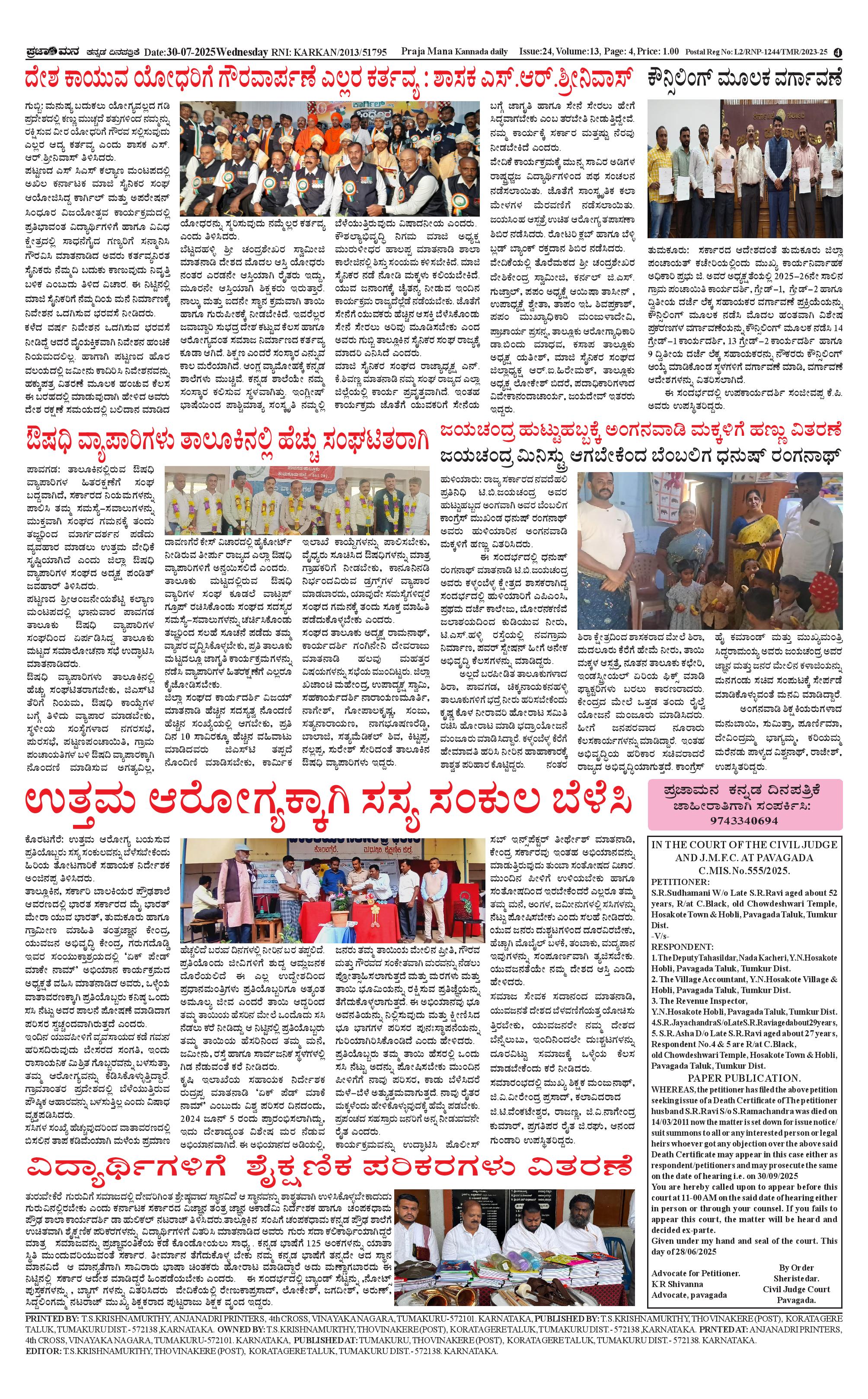 ಪ್ರಜಾಮನ 30 JULY 2025 Page: 4 July 30, 2025 << First << 4 >> Last >> Page 1Page 2Page 3Page 4 × ಪ್ರಜಾಮನ 30 JULY 2025 PRAJAMANA-page-001PRAJAMANA-page-002PRAJAMANA-page-003PRAJAMANA-page-004 << First << 4 >> Last >> PRAJAMANA-page-001PRAJAMANA-page-002PRAJAMANA-page-003PRAJAMANA-page-004 PRAJAMANA-page-004