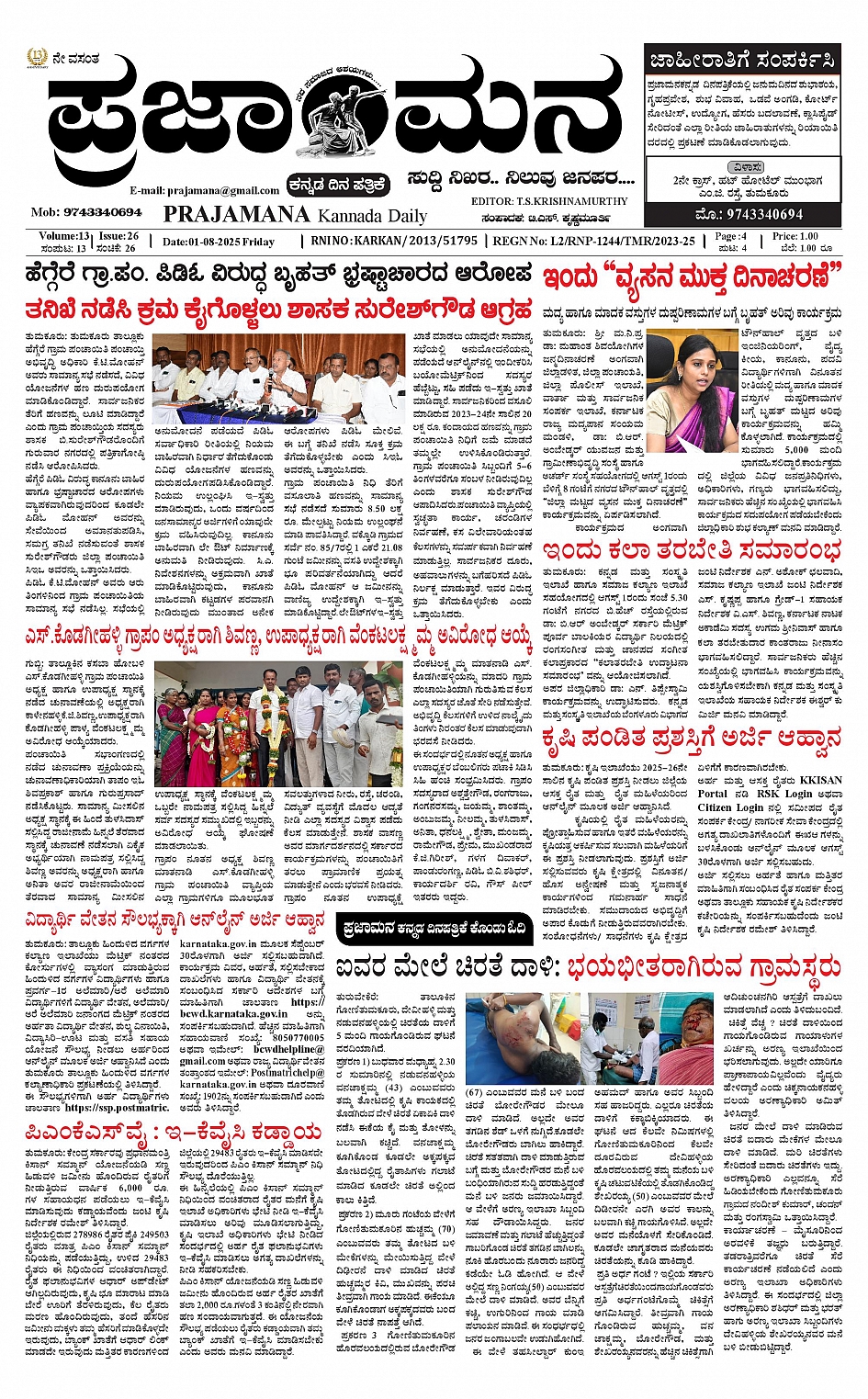 ಪ್ರಜಾಮನ 1 AUGUST 2025 August 01, 2025 << First << 1 >> Last >> Page 1Page 2Page 3Page 4 × ಪ್ರಜಾಮನ 1 AUGUST 2025 PRAJAMANA-page-001PRAJAMANA-page-002PRAJAMANA-page-003PRAJAMANA-page-004 << First << 1 >> Last >> PRAJAMANA-page-001PRAJAMANA-page-002PRAJAMANA-page-003PRAJAMANA-page-004 PRAJAMANA-page-001