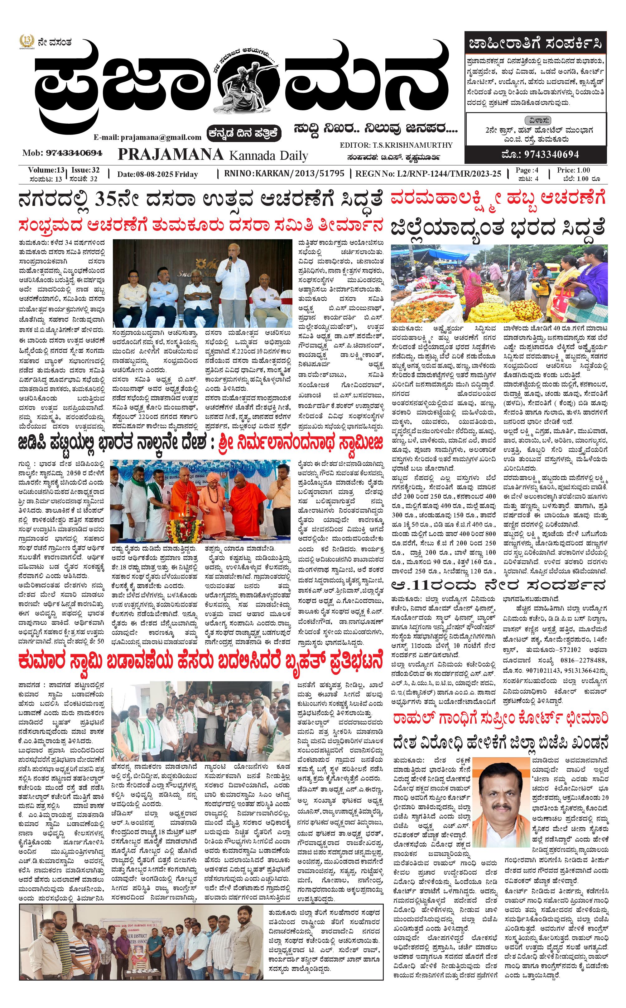 ಪ್ರಜಾಮನ 8 AUGUST 2025