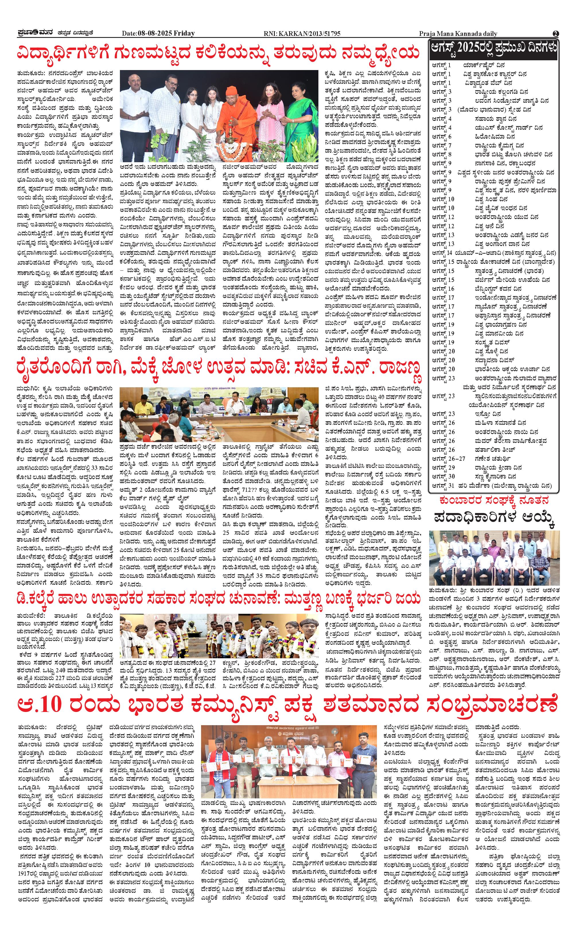 ಪ್ರಜಾಮನ 8 AUGUST 2025 Page: 2 August 08, 2025 << First << 2 >> Last >> Page 1Page 2Page 3Page 4 × ಪ್ರಜಾಮನ 8 AUGUST 2025 PRAJAMANA-page-001PRAJAMANA-page-002PRAJAMANA-page-003PRAJAMANA-page-004 << First << 2 >> Last >> PRAJAMANA-page-001PRAJAMANA-page-002PRAJAMANA-page-003PRAJAMANA-page-004 PRAJAMANA-page-002