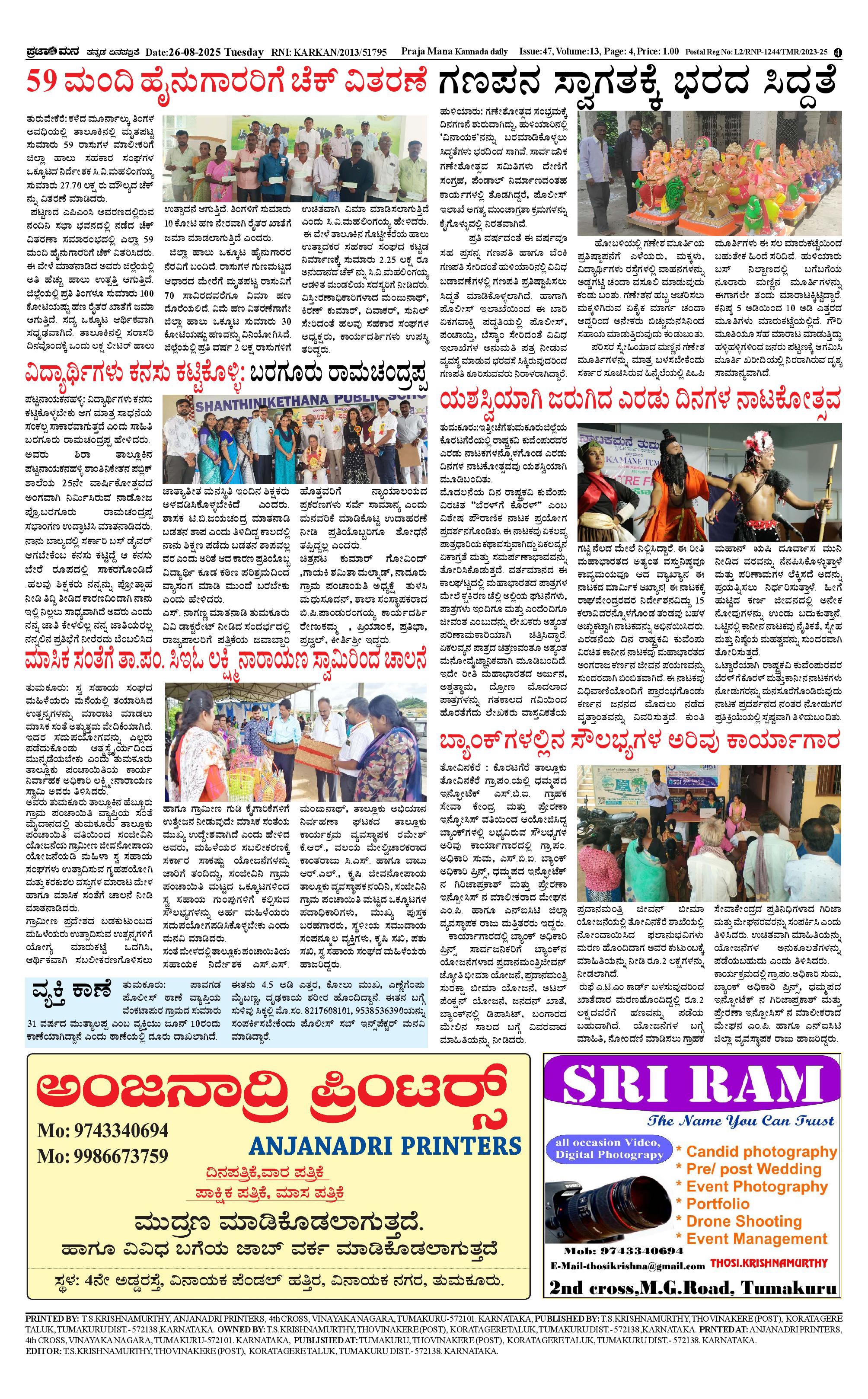 ಪ್ರಜಾಮನ 26 AUGUST 2025 Page: 4 August 26, 2025 << First << 4 >> Last >> Page 1Page 2Page 3Page 4 × ಪ್ರಜಾಮನ 26 AUGUST 2025 PRAJAMANA-page-001PRAJAMANA-page-002PRAJAMANA-page-003PRAJAMANA-page-004 << First << 4 >> Last >> PRAJAMANA-page-001PRAJAMANA-page-002PRAJAMANA-page-003PRAJAMANA-page-004 PRAJAMANA-page-004