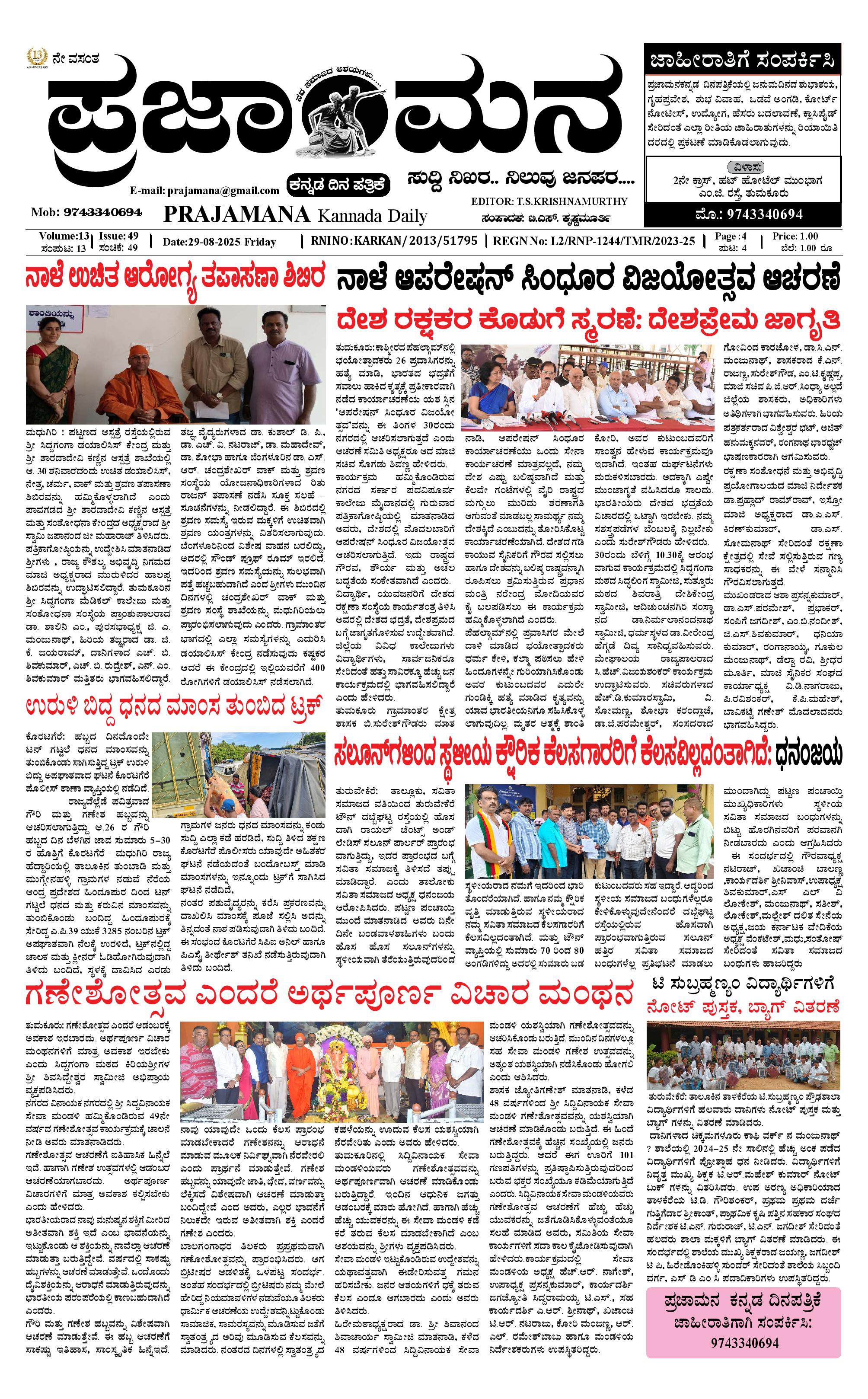 ಪ್ರಜಾಮನ 29 AUGUST 2025 August 29, 2025 << First << 1 >> Last >> Page 1Page 2Page 3Page 4 × ಪ್ರಜಾಮನ 29 AUGUST 2025 PRAJAMANA-page-001PRAJAMANA-page-002PRAJAMANA-page-003PRAJAMANA-page-004 << First << 1 >> Last >> PRAJAMANA-page-001PRAJAMANA-page-002PRAJAMANA-page-003PRAJAMANA-page-004 PRAJAMANA-page-001