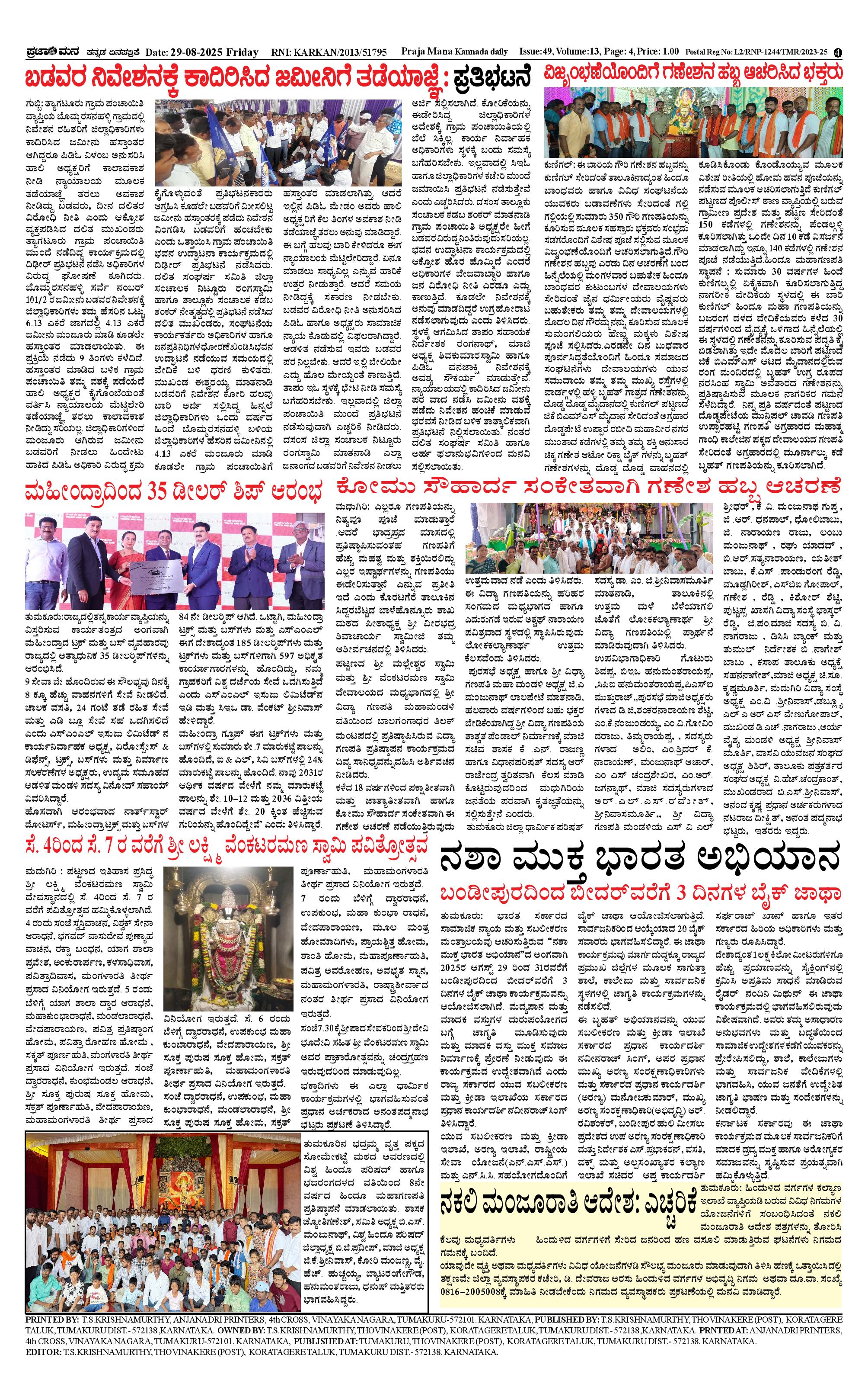 ಪ್ರಜಾಮನ 29 AUGUST 2025 Page: 4 August 29, 2025 << First << 4 >> Last >> Page 1Page 2Page 3Page 4 × ಪ್ರಜಾಮನ 29 AUGUST 2025 PRAJAMANA-page-001PRAJAMANA-page-002PRAJAMANA-page-003PRAJAMANA-page-004 << First << 4 >> Last >> PRAJAMANA-page-001PRAJAMANA-page-002PRAJAMANA-page-003PRAJAMANA-page-004 PRAJAMANA-page-004