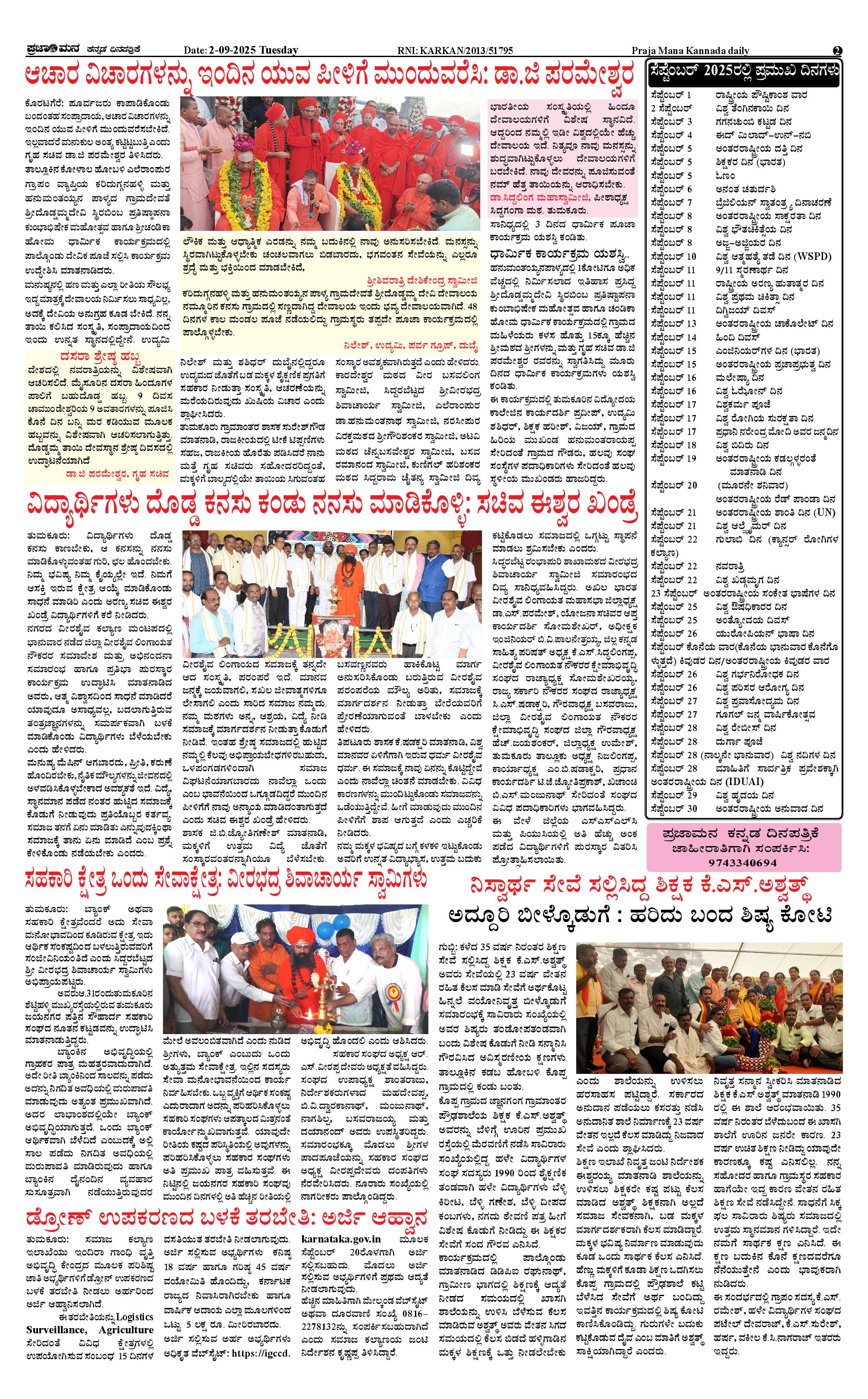 ಪ್ರಜಾಮನ 2 SEPTEMBER 2025 Page: 2 September 02, 2025 << First << 2 >> Last >> Page 1Page 2Page 3Page 4 × ಪ್ರಜಾಮನ 2 SEPTEMBER 2025 PRAJAMANA-page-001PRAJAMANA-page-002PRAJAMANA-page-003PRAJAMANA-page-004 << First << 2 >> Last >> PRAJAMANA-page-001PRAJAMANA-page-002PRAJAMANA-page-003PRAJAMANA-page-004 PRAJAMANA-page-002