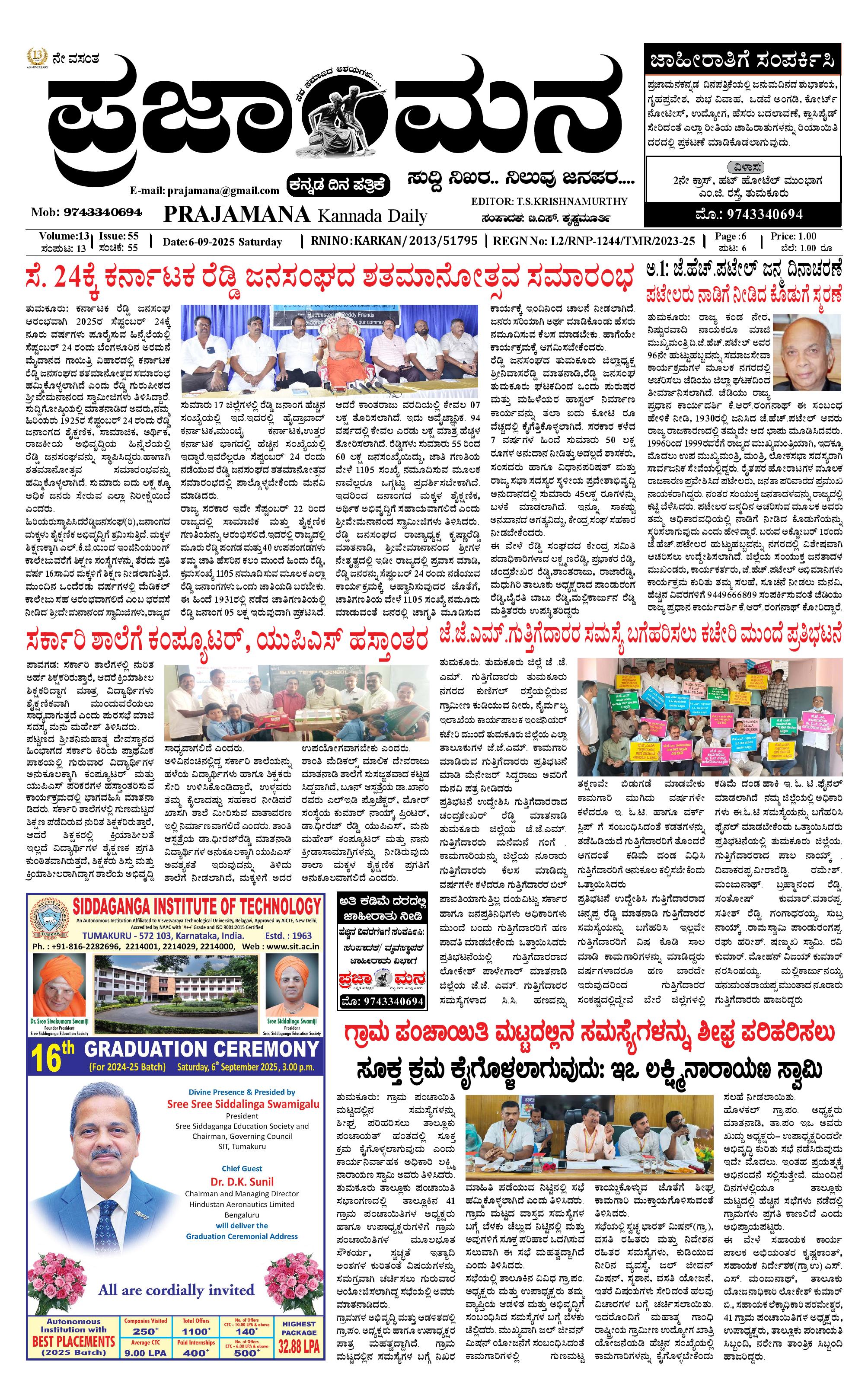 ಪ್ರಜಾಮನ 6 SEPTEMBER 2025 September 06, 2025 Page 1 × ಪ್ರಜಾಮನ 6 SEPTEMBER 2025 PRAJAMANA-page-001 PRAJAMANA-page-001 PRAJAMANA-page-001