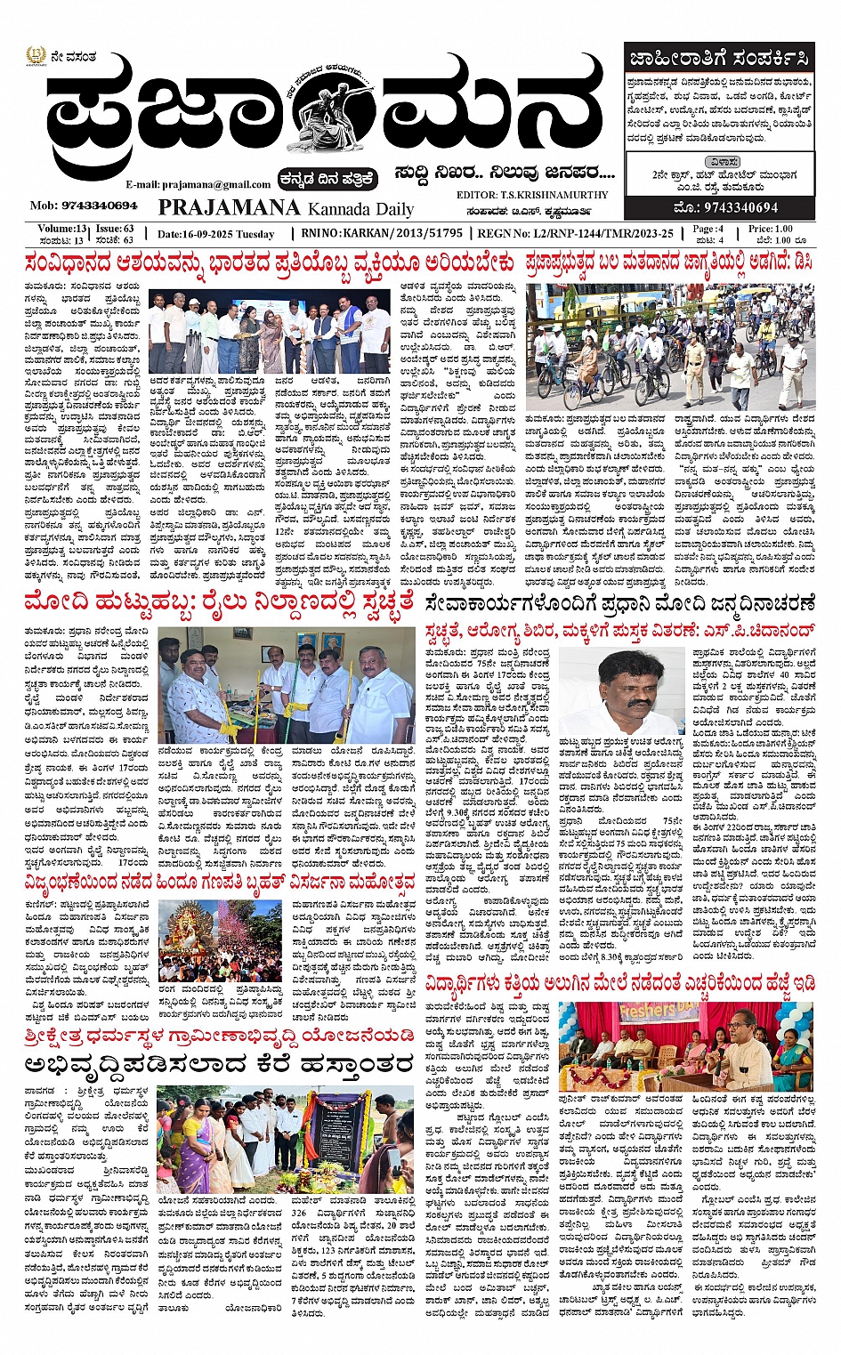 ಪ್ರಜಾಮನ 16 SEPTEMBER 2025 September 16, 2025 << First << 1 >> Last >> Page 1Page 2Page 3Page 4 × ಪ್ರಜಾಮನ 16 SEPTEMBER 2025 PRAJAMANA-page-001PRAJAMANA-page-002PRAJAMANA-page-003PRAJAMANA-page-004 << First << 1 >> Last >> PRAJAMANA-page-001PRAJAMANA-page-002PRAJAMANA-page-003PRAJAMANA-page-004 PRAJAMANA-page-001