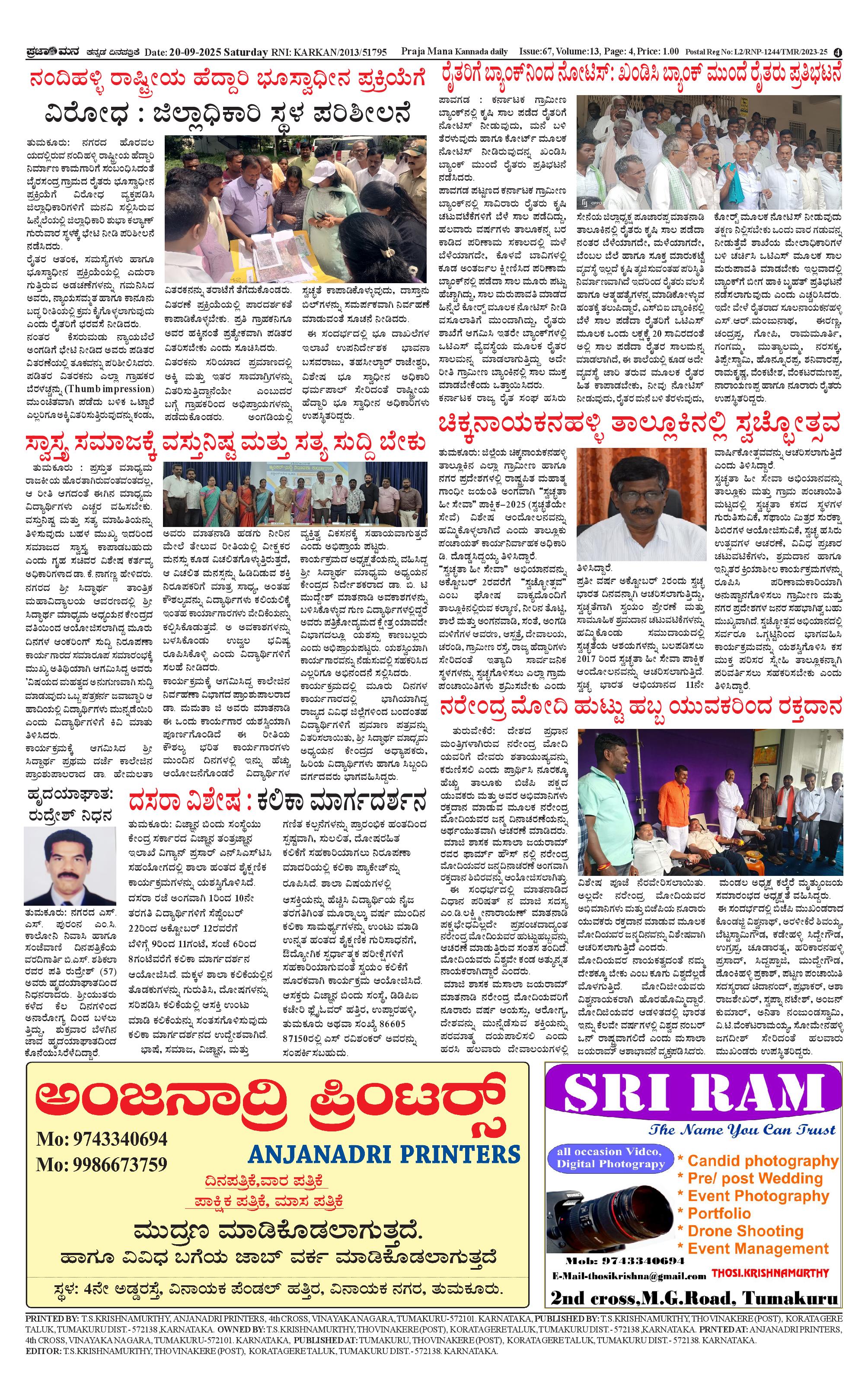 ಪ್ರಜಾಮನ 20 SEPTEMBER 2025 Page: 4 September 20, 2025 << First << 4 >> Last >> Page 1Page 2Page 3Page 4 × ಪ್ರಜಾಮನ 20 SEPTEMBER 2025 PRAJAMANA-page-001PRAJAMANA-page-002PRAJAMANA-page-003PRAJAMANA-page-004 << First << 4 >> Last >> PRAJAMANA-page-001PRAJAMANA-page-002PRAJAMANA-page-003PRAJAMANA-page-004 PRAJAMANA-page-004
