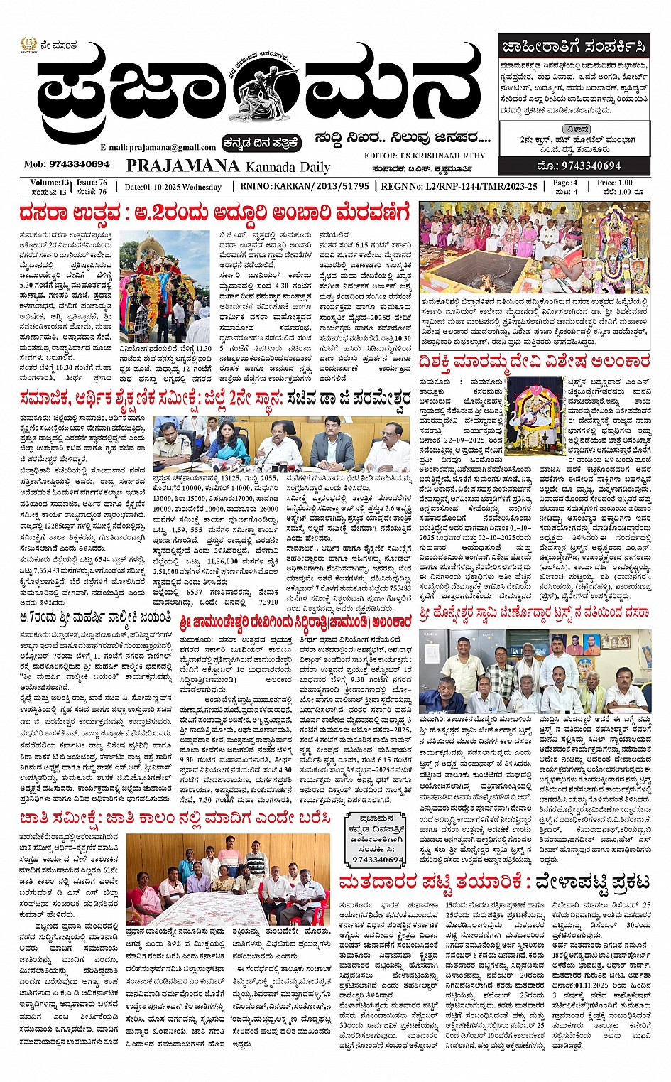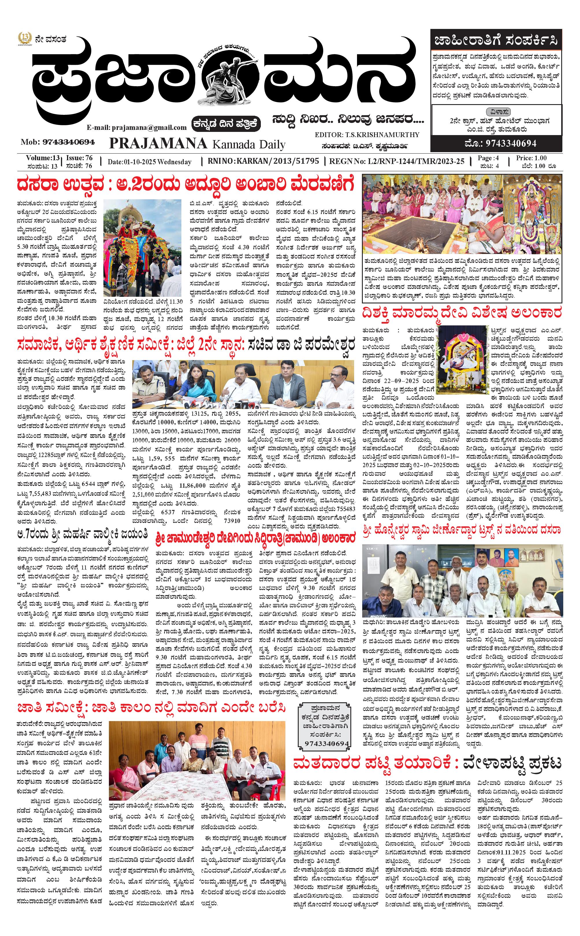 ಪ್ರಜಾಮನ 1 OCTOBER 2025 October 01, 2025 << First << 1 >> Last >> Page 1Page 2Page 3 × ಪ್ರಜಾಮನ 1 OCTOBER 2025 PRAJAMANA-page-001-1PRAJAMANA-page-002PRAJAMANA-page-003 << First << 1 >> Last >> PRAJAMANA-page-001-1PRAJAMANA-page-002PRAJAMANA-page-003 PRAJAMANA-page-001-1
