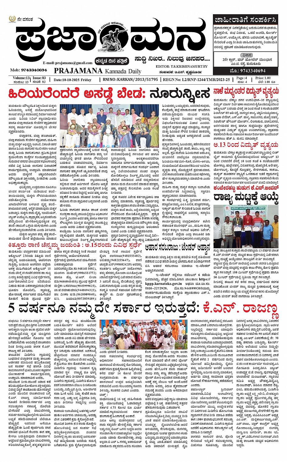 ಪ್ರಜಾಮನ 10 OCTOBER 2025 October 10, 2025 << First << 1 >> Last >> Page 1Page 2Page 3Page 4 × ಪ್ರಜಾಮನ 10 OCTOBER 2025 PRAJAMANA-page-001PRAJAMANA-page-002PRAJAMANA-page-003PRAJAMANA-page-004 << First << 1 >> Last >> PRAJAMANA-page-001PRAJAMANA-page-002PRAJAMANA-page-003PRAJAMANA-page-004 PRAJAMANA-page-001