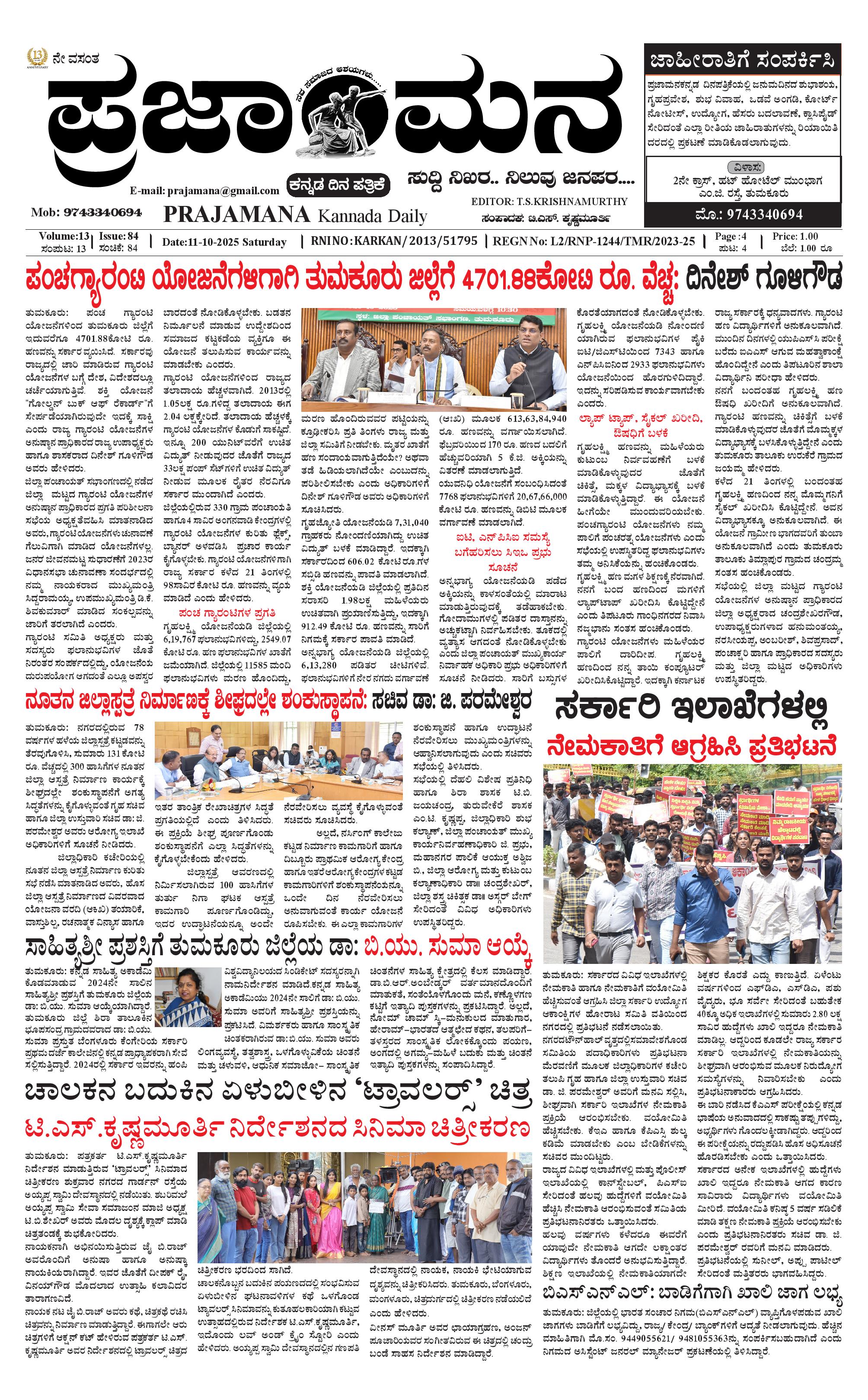 ಪ್ರಜಾಮನ 11 OCTOBER 2025 October 11, 2025 << First << 1 >> Last >> Page 1Page 2Page 3Page 4 × ಪ್ರಜಾಮನ 11 OCTOBER 2025 PRAJAMANA-page-001PRAJAMANA-page-002PRAJAMANA-page-003PRAJAMANA-page-004 << First << 1 >> Last >> PRAJAMANA-page-001PRAJAMANA-page-002PRAJAMANA-page-003PRAJAMANA-page-004 PRAJAMANA-page-001